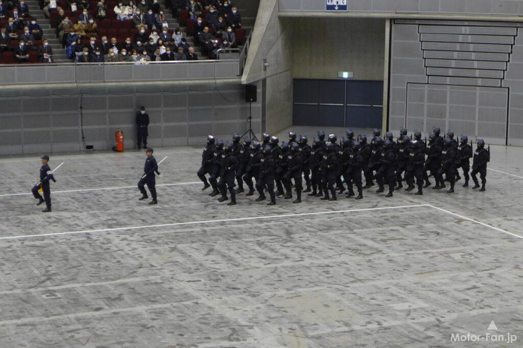 女性警察官特別機動隊、警察学校、刑事部鑑識課警察犬部隊、千葉県情報通信部機動警察通信隊の順番で一般部隊による徒歩行進が終わると、いよいよ車両部隊の行進が始まる。