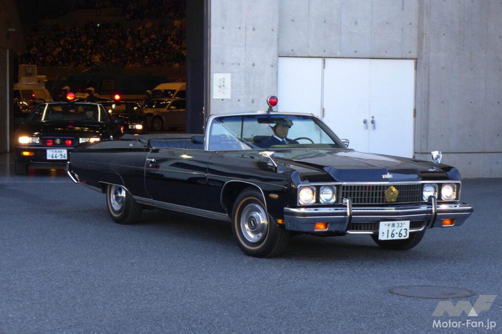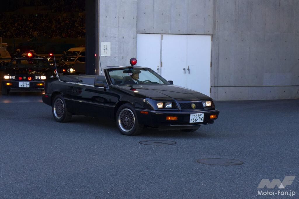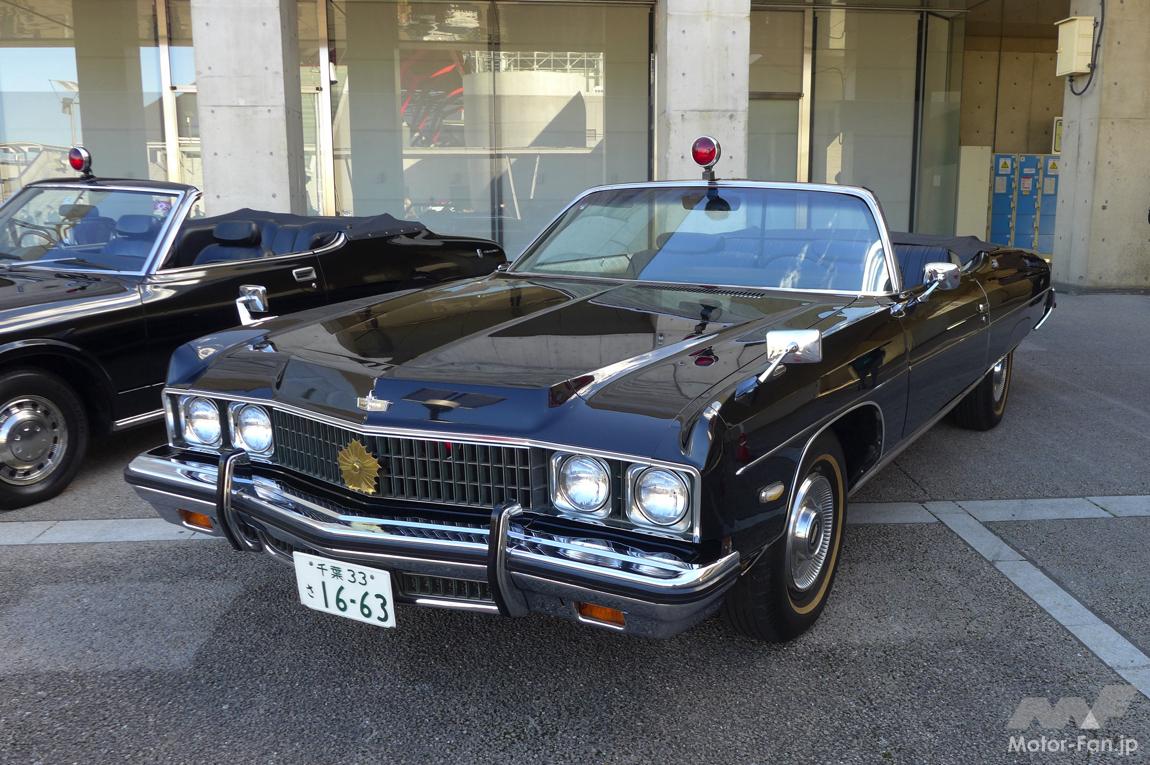 というのも、千葉県警は式典用にユニークな車両を保有しているからで、1971年型シボレー・カプリス・コンバーティブル、クライスラー・ルバロンGTSコンバーティブル(年式不明の中期型)、クジラ・クラウンのオープンカーといずれも旧車ばかり。