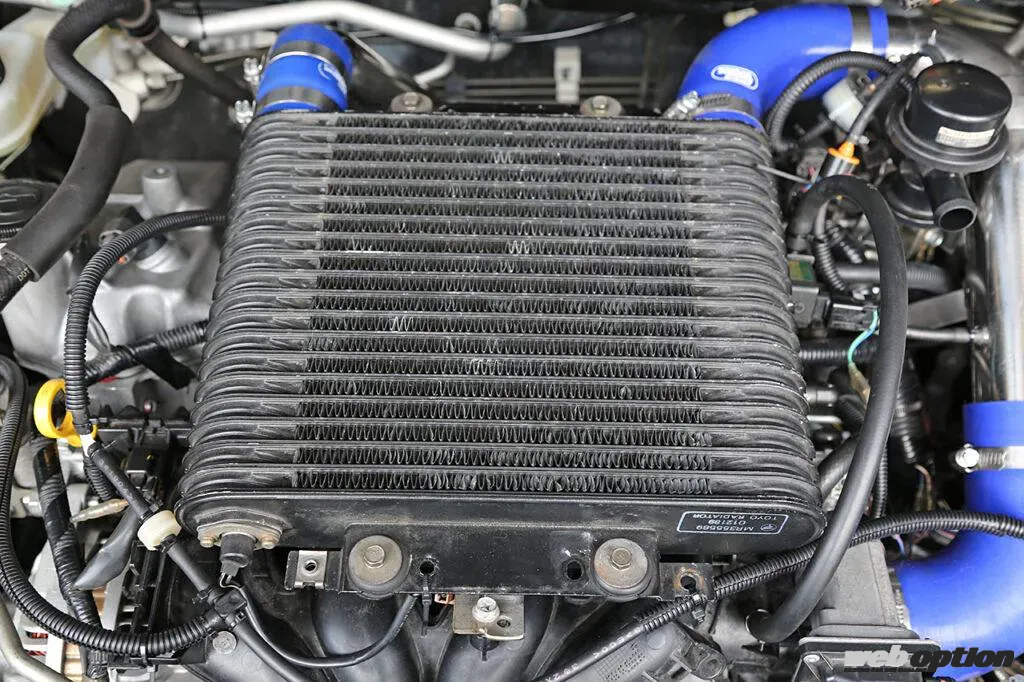 上置きインタークーラーは三菱純正を流用。こうしたアプローチは経験豊富なハーフウェイならではだ。