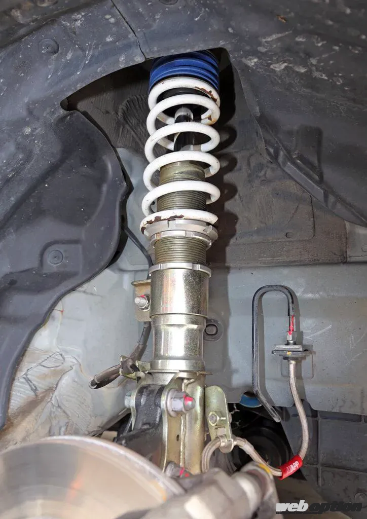 足回りは、ターボ化に合わせて仕様変更したオリジナルのキャットウォークタイプR車高調を軸にセットアップ。ハイパワーFF特有のトルクステアを抑制するために、減衰力とアライメントの設定は時間をかけて煮詰めたそうだ。