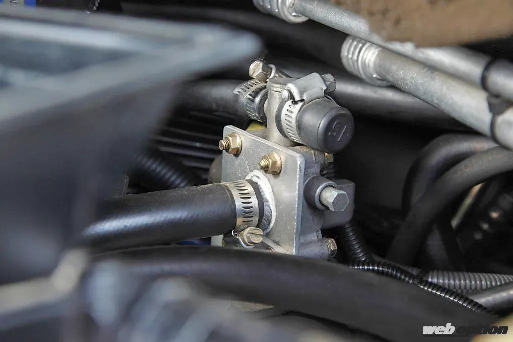 補助空気をソレノイドで制御するAACバルブ(IAAユニット)はZ32用を流用。Vプロでのセッティングと合わせて、安定したアイドリングを実現するためのポイントとなるパーツだ。