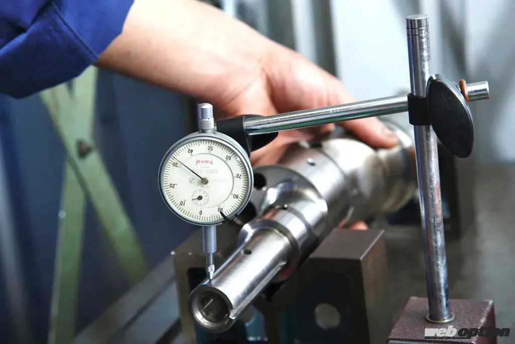 その他、エキセンの曲がり測定なども必ず行われている作業のひとつ。メタルの異常摩耗などがある場合、エキセンの曲がりが原因ということもあるからだ。