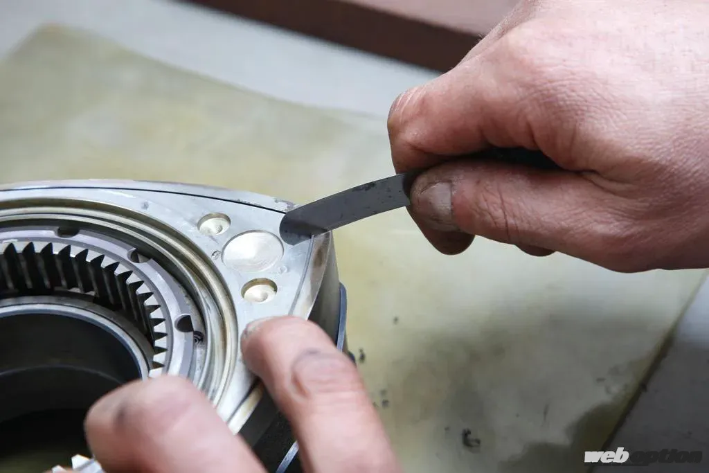 さらに、ローターとハウジングのクリアランス、サイドシールとコーナーシールのクリアランスは1つのローター(1面で)で3カ所ある。それらを各々が一定の範囲内に収まっているから良しとするのではなく、すべてを同じ状態にまで追い込むという計測・調整を繰り返す非常に手間が掛かる作業も行っているのである。