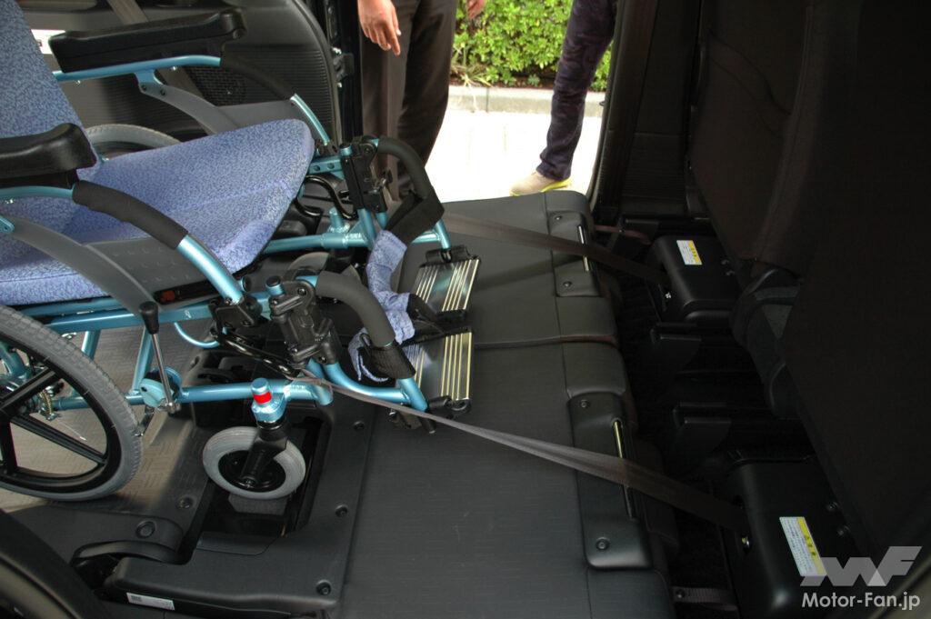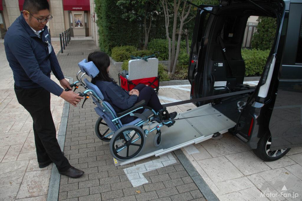 車体側としては、リアサスペンションをN-BOX スロープ専用にチューニングしたという。当然それは、車椅子に乗った状態で移動したときの乗り心地を確保するためである。
