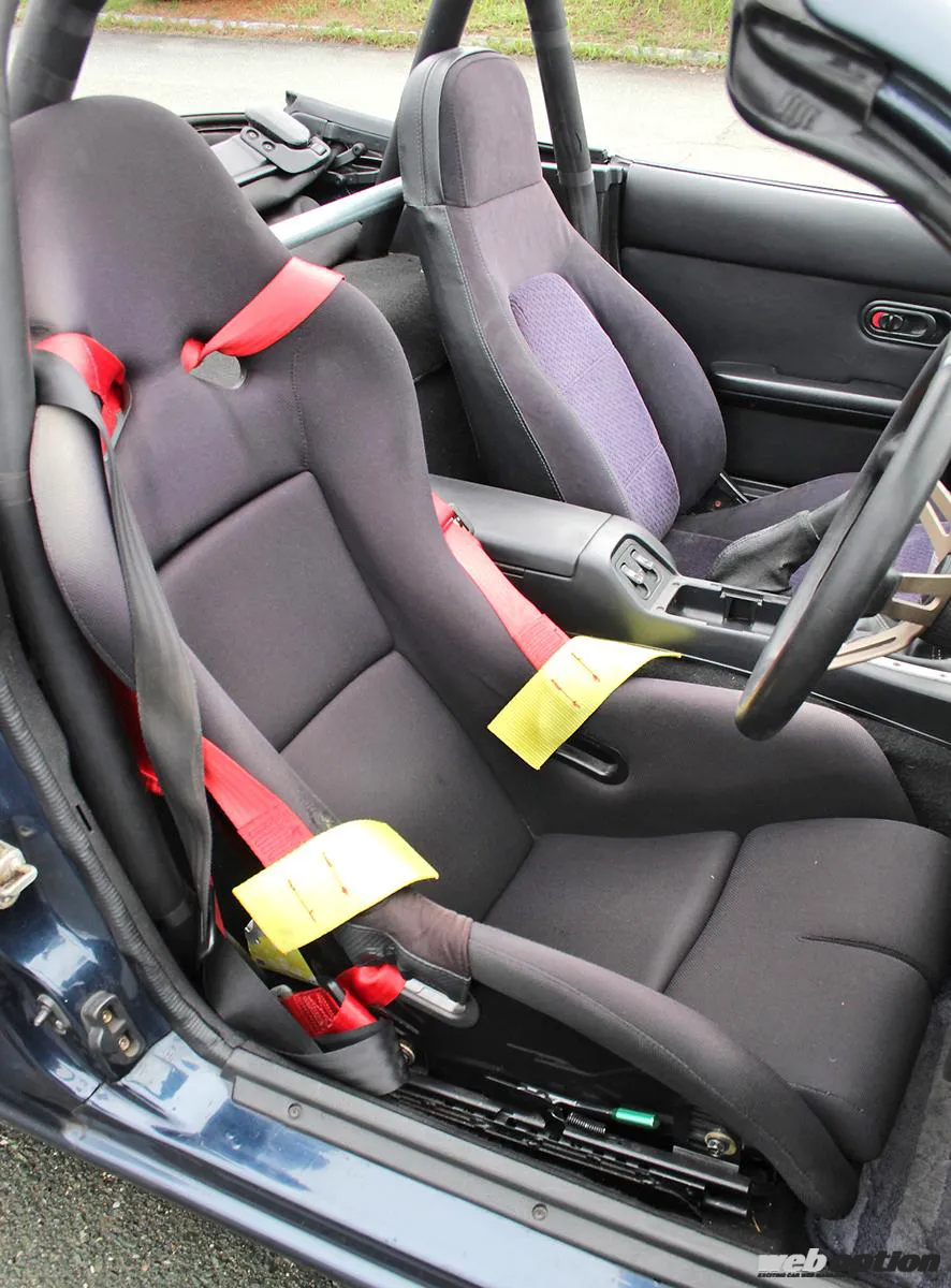 オーナーはショートサーキットを中心に走りを楽しんでいて、トップクラスのタイムを記録しているとか。バケットシートやレーシングハーネスはそのための装備だ。