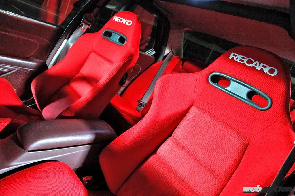 シートは運転席、助手席ともレカロSR4を装着。それに合わせてリヤシートも同じ生地で張り替え、コーディネイトを図っている。