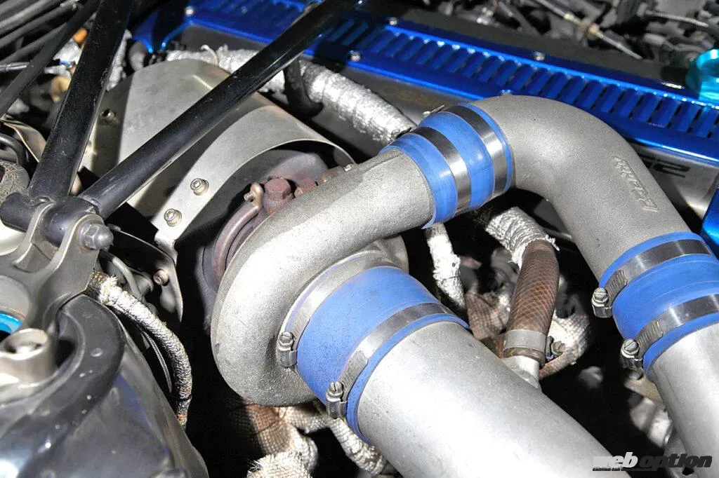 タービンはトラストTD07S-25G(17cm2)をセット。最大ブースト圧1.4キロで530〜540psを発揮し、7000rpmオーバーまでパワーを持続させる出力特性だ。