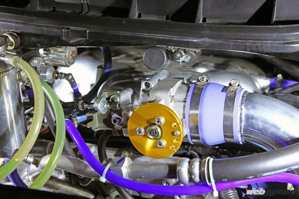燃料系はリターンパイプの増設や、サード大容量フューエルポンプへの換装が行われる。インジェクターはR35GT-R用の840ccだ。その他、吸気系はF-CON Vプロの導入をきっかけに電制スロットルをナプレックの機械式80φに交換。サージタンクはZ33用を流用している。