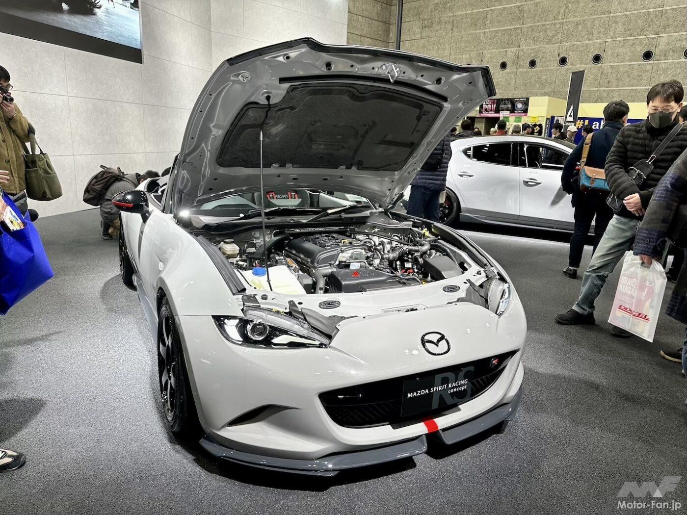 マツダスピリットレーシングのロードスターは2.0Lで200馬力を目指す!ノーマルとの違いは?東京オートサロン2024のマツダは「ロータリーエンジンの開発リソースを増強する」といった驚きの発表もあったが、もっと気になるのは「MAZDA SPRIT RACING」のロゴをまとった2台のコンセプトカー。レースマシンさながらのパフォーマンスを市販車に与えるという古典的なアプローチは、マツダファンの心をつかむか。 PHOTO&REPORT:山本晋也(YAMAMOTO Shinya)