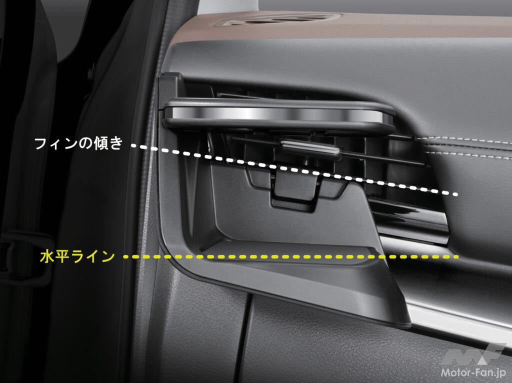 ダッシュボードの左右端のエアコン吹き出し口にフィットするもので、工具を使わずに取り付けが可能。装着状態でもフィンは左右の操作が行なえる(上下の操作は非対応)。