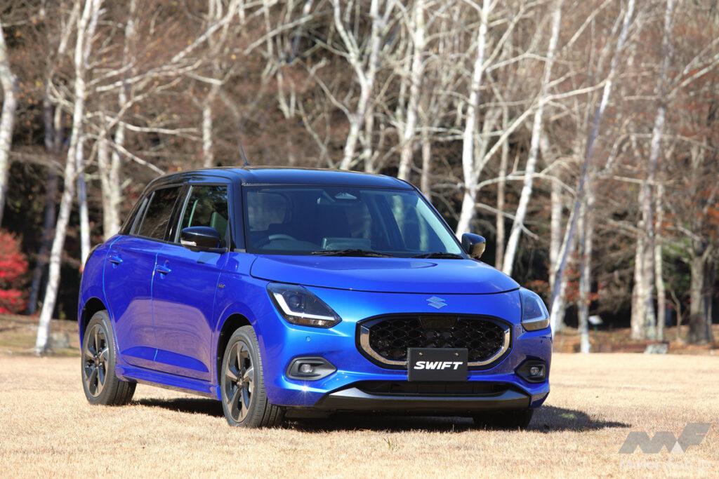 『ジャパンモビリティショー2023』ではコンセプトモデルと銘打ちながらも、ほぼほぼ市販車としてそのデザインとスペックをお披露目し、様々な話題を呼んだ新型スイフト。Bセグメントのコンパクトカーとしては先代モデルの面影を目元やグリルに残しながらも、そのディティールはクラムシェルタイプのボンネットを基軸に大胆なラウンドデザインを打ち出して、グラマラスだったその印象を、シャープに引き締めた。