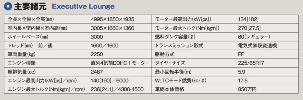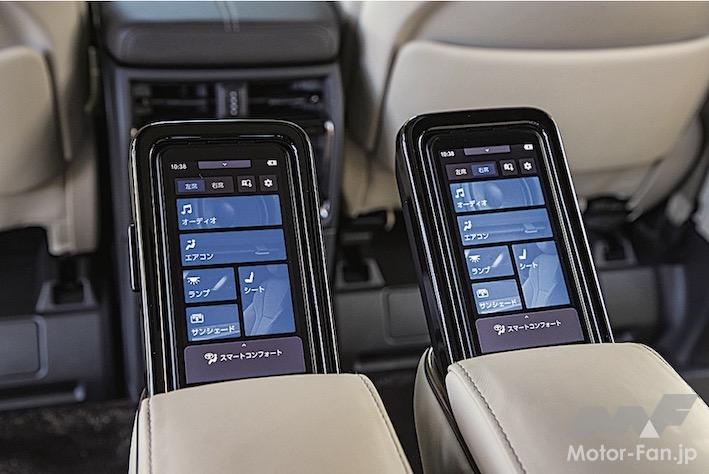 シャシー関連でも独自の味わいが強調される。全車19インチタイヤを履くヴェルファイアに対して、アルファードのそれはあえて17〜18インチという設定としている。特に最上級のショーファードリブングレードである「エグゼクティブラウンジ」は、17インチに今回新機軸である「周波数感応型ショックアブソーバー」という専用の組み合わせで、最優先の特等席といえるセカンドシートの快適性を追求している。