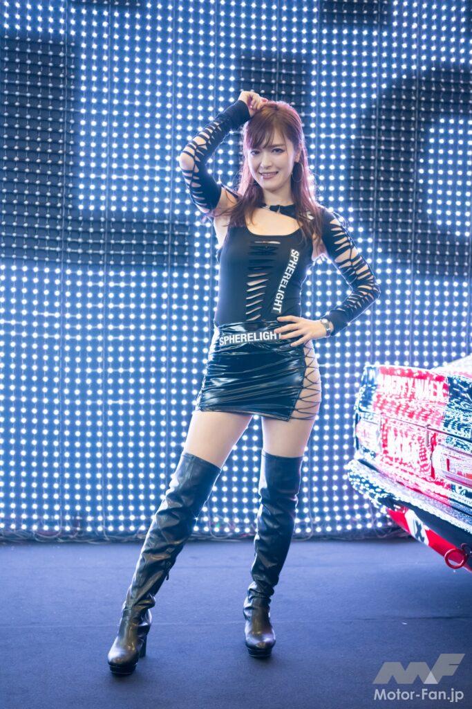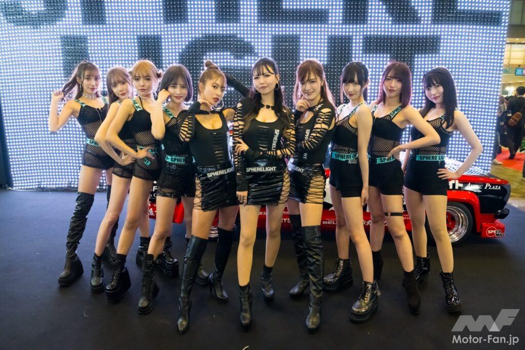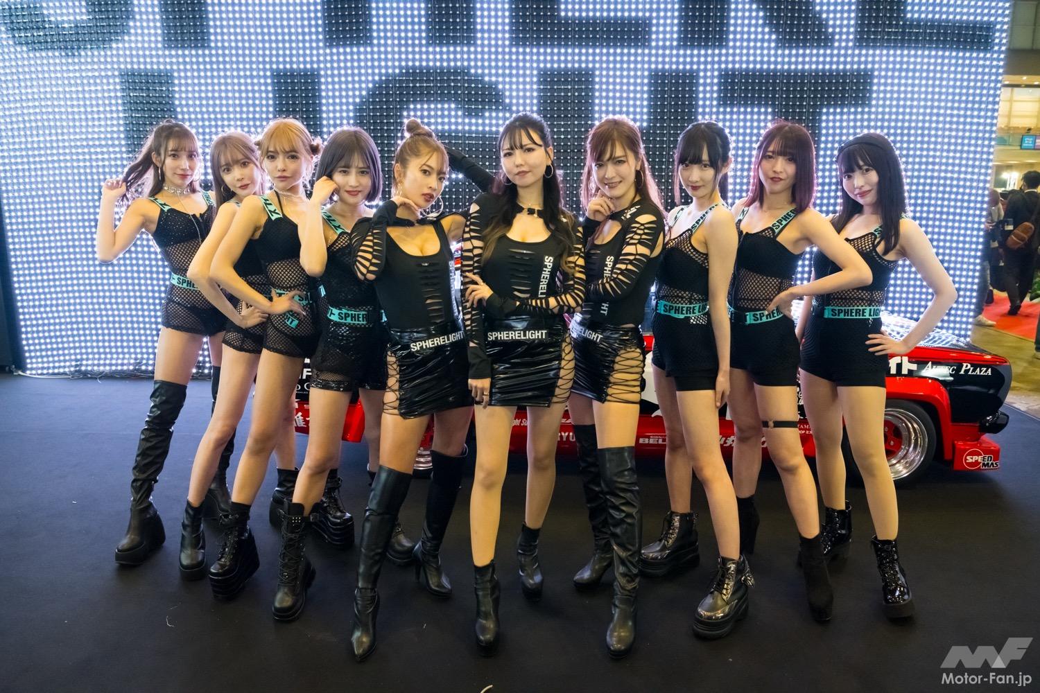 LEDヘッドライト、HIDキットを販売するSPHERE LIGHTは、10人の美女たちがブースに登場。3パターンのコスチュームは、東京オートサロン2024コスチュームアワードでも優秀賞を受賞するなど注目を浴びた。