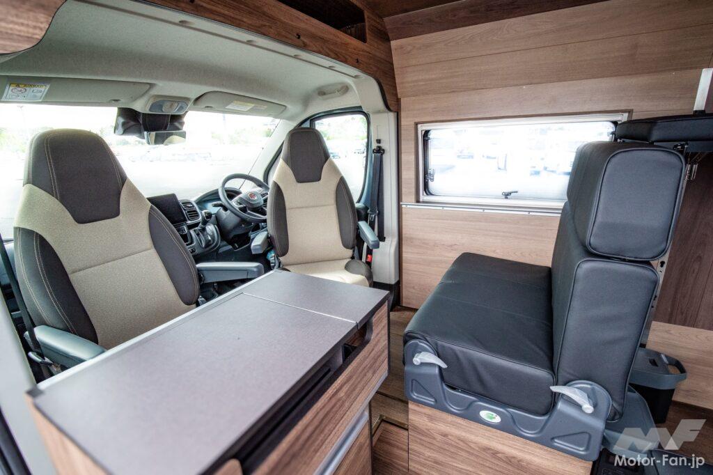 運転席と助手席の回転対座機構をすべての基にするために、どうしても同じ様な居住空間になってしまうのだ。これはかつて、「ハイエース」をベースにした国産バンコンモデルがほぼ同じような車内レイアウトになってしまった状況に似ている。