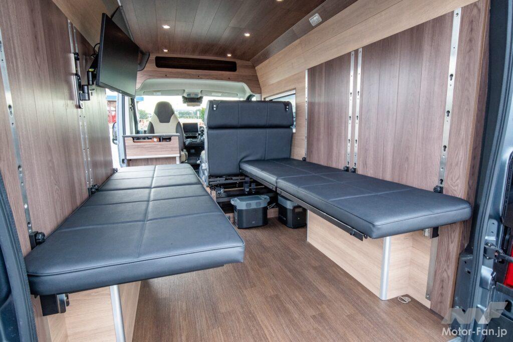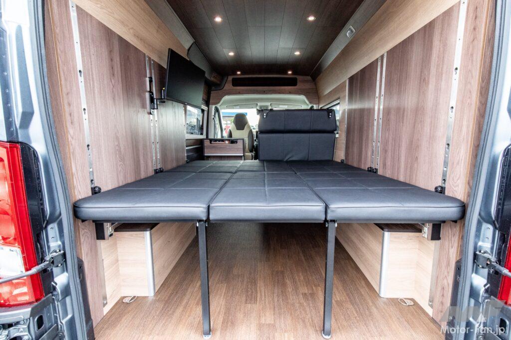 ちなみにこのモデルには「GRAN BOX VL(バンライフ)」という別バージョンも用意されており、こちらはコンパクトキッチンと中間のベッドマットなどが標準装備となる。ちなみに、写真はGRAN BOX VLの仕様だ。