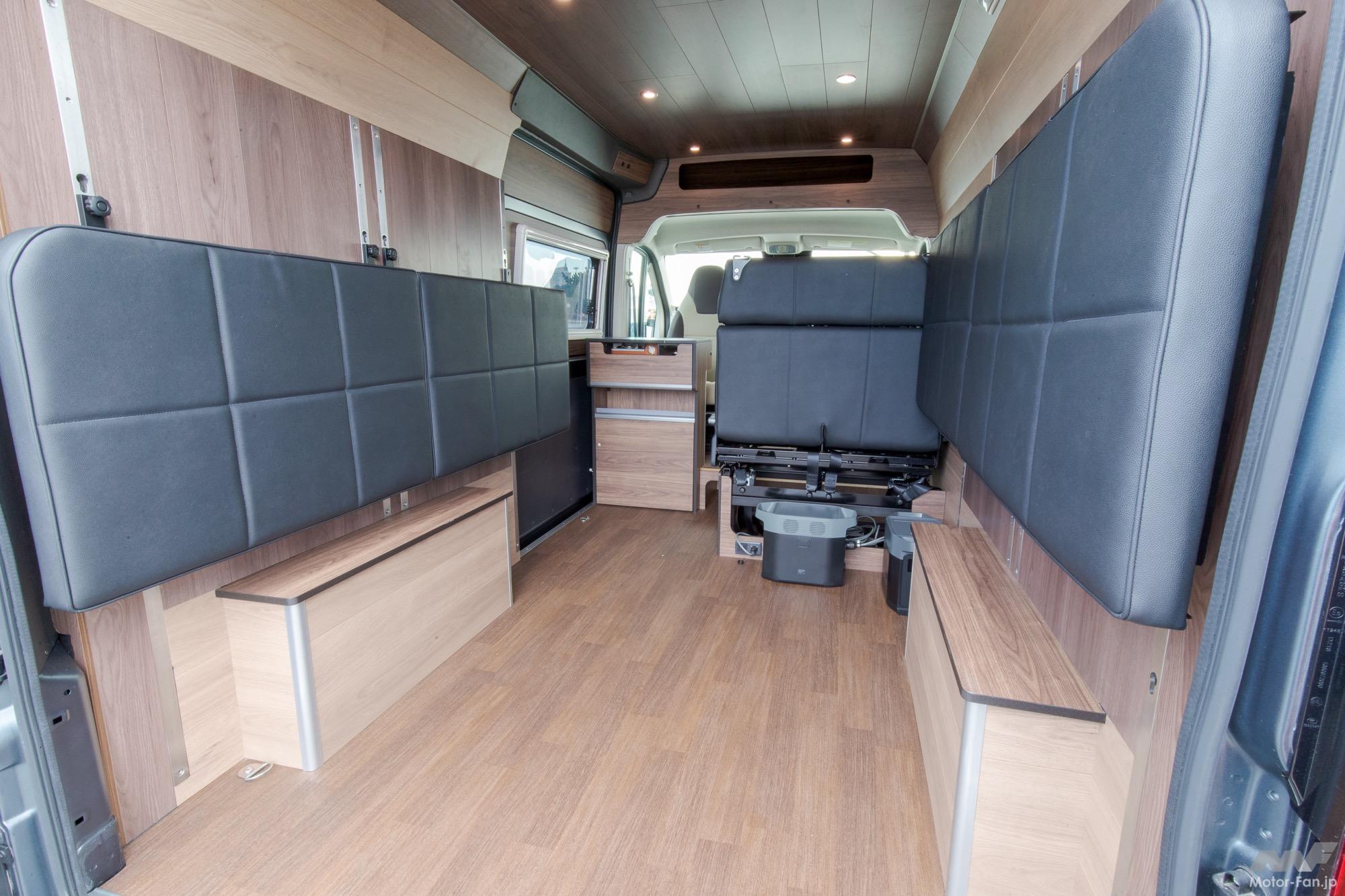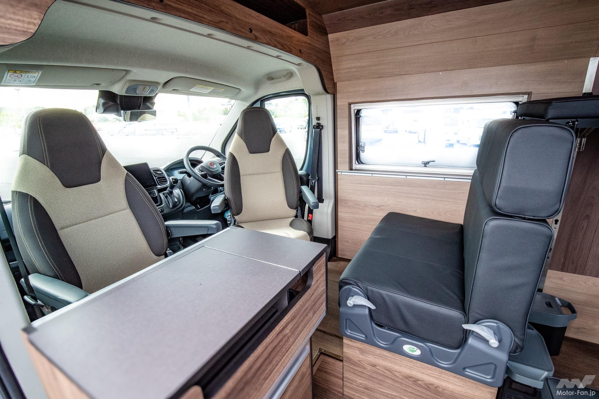 運転席と助手席の回転対座機構をすべての基にするために、どうしても同じ様な居住空間になってしまうのだ。これはかつて、「ハイエース」をベースにした国産バンコンモデルがほぼ同じような車内レイアウトになってしまった状況に似ている。