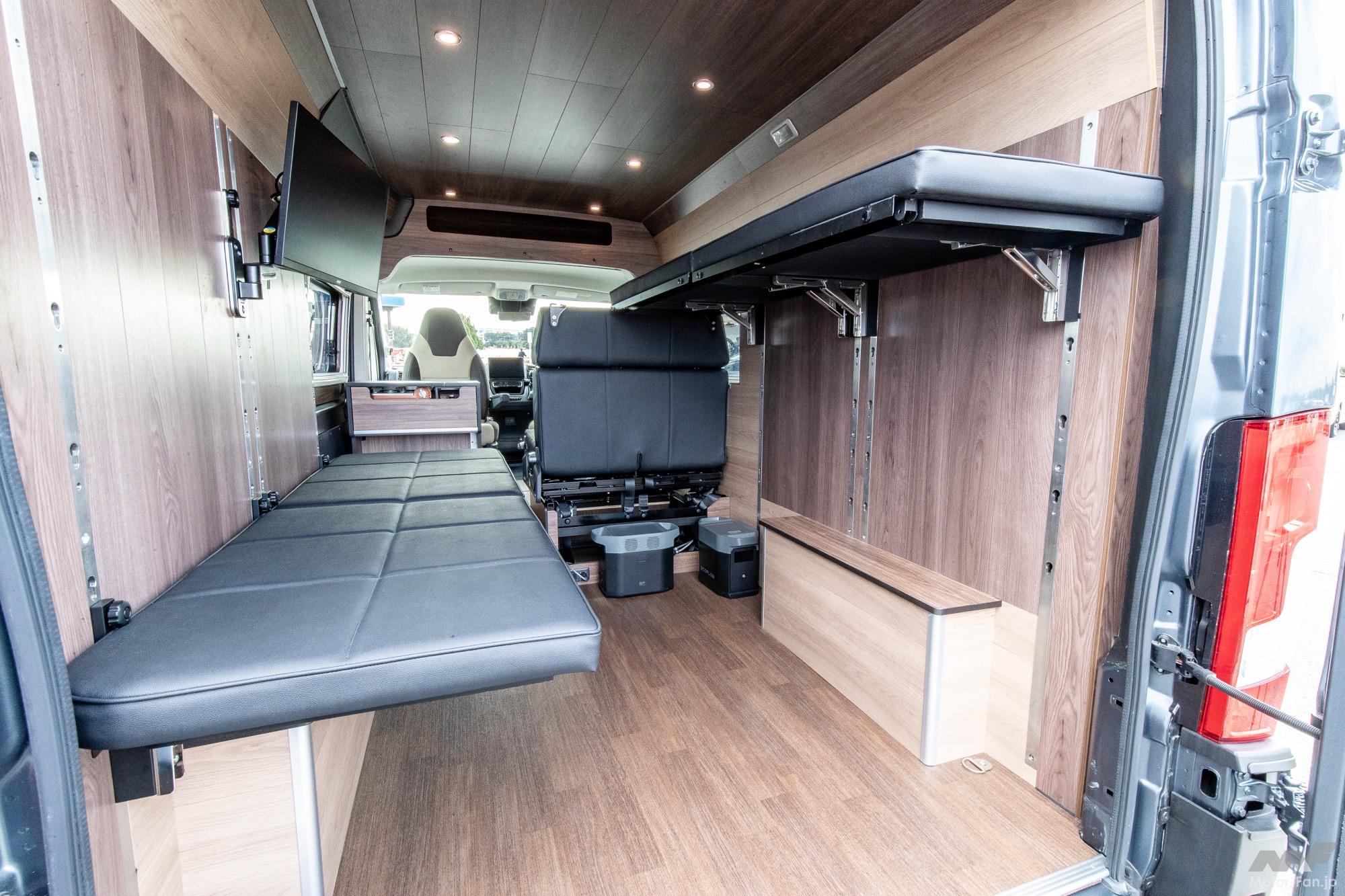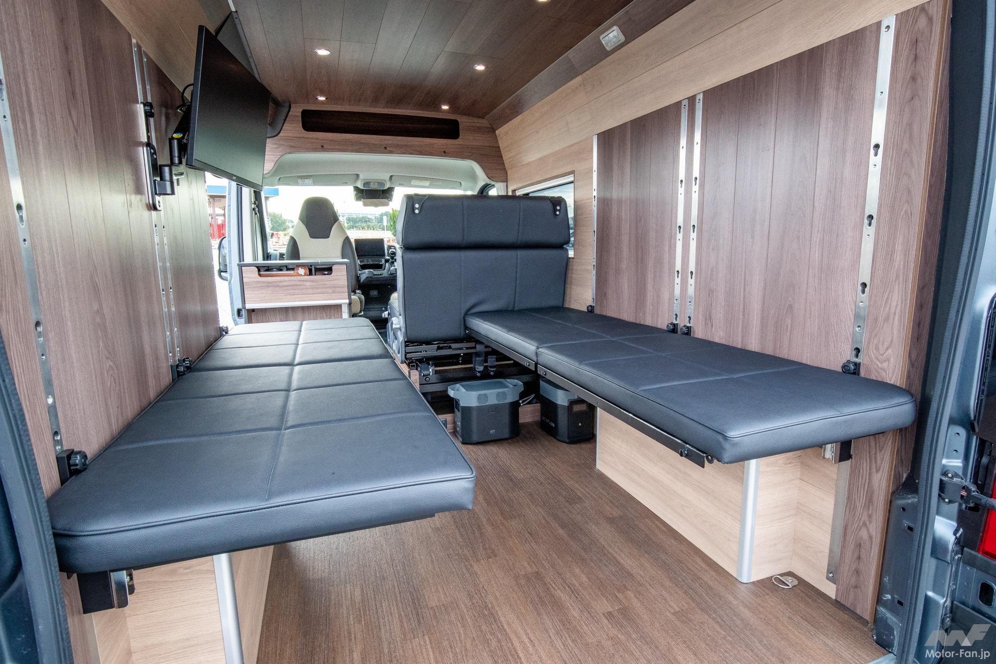 ちなみにこのモデルには「GRAN BOX VL(バンライフ)」という別バージョンも用意されており、こちらはコンパクトキッチンと中間のベッドマットなどが標準装備となる。ちなみに、写真はGRAN BOX VLの仕様だ。