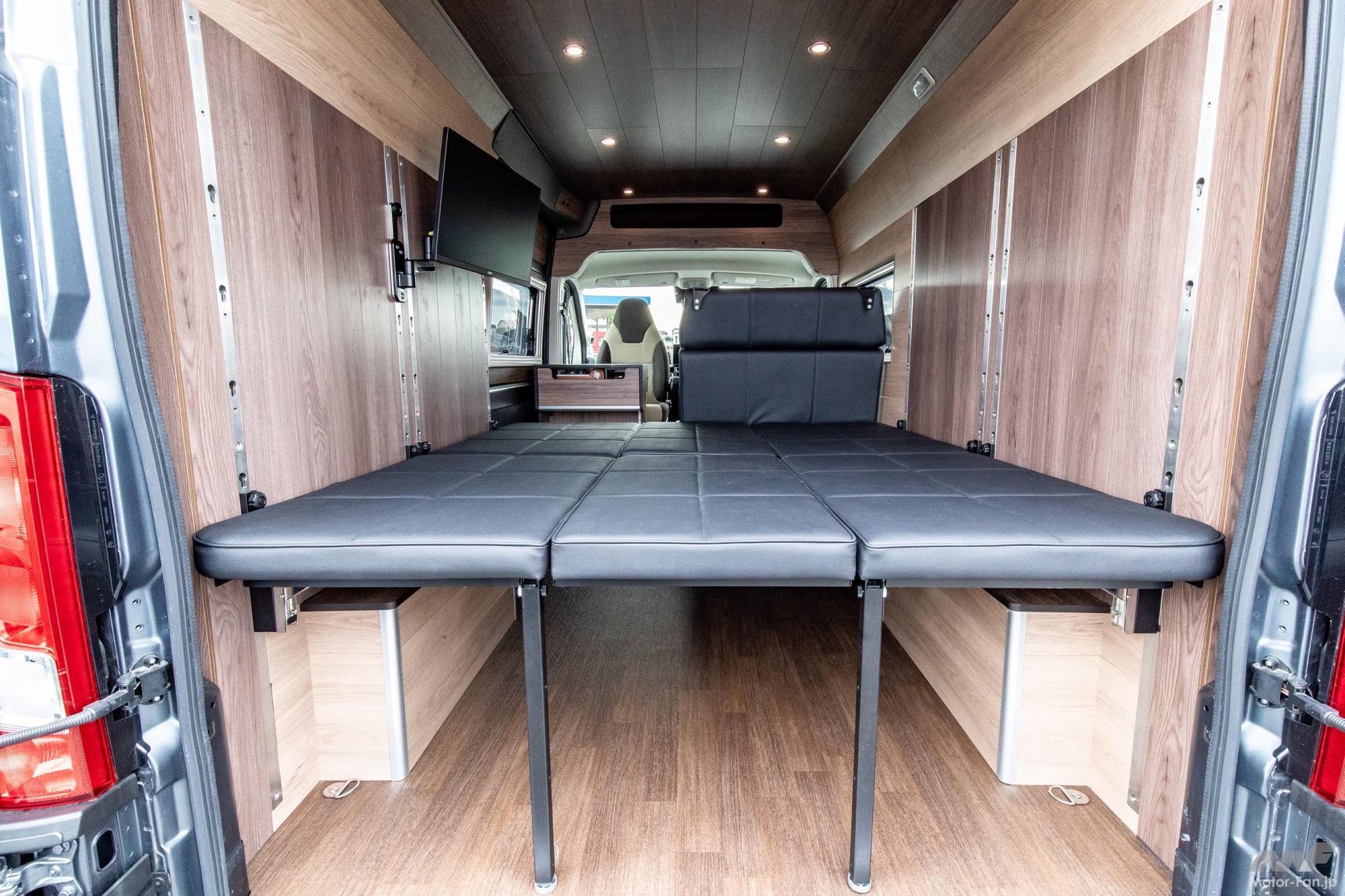 ベッドの高さを左右で違えたり、片方を外すことで、空いた空間にバイクや自転車、キャンプグッズを積むことが可能となり、アクティブなキャンパーには実に使い勝手がいいモデルなのである。これまでのデュカトキャンパーは移動と車中泊だけが用途であったが、これなら様々なライススタイルに応えてくれるだろう。