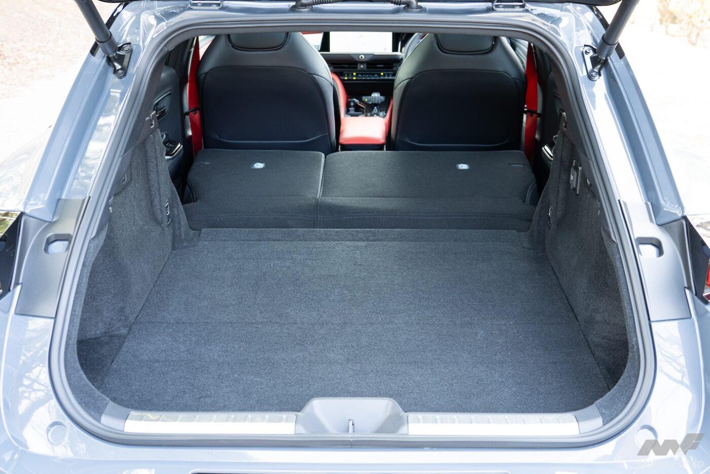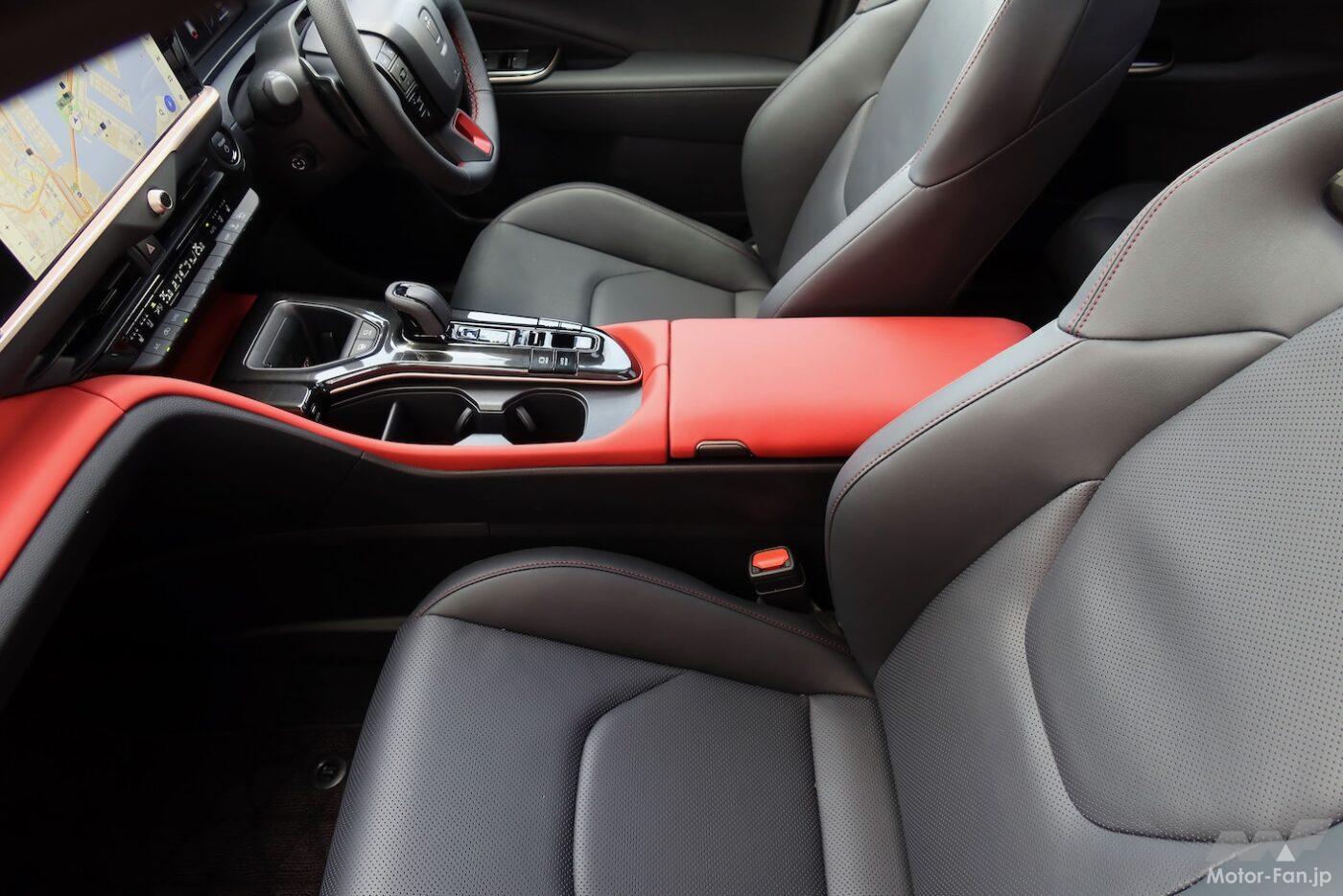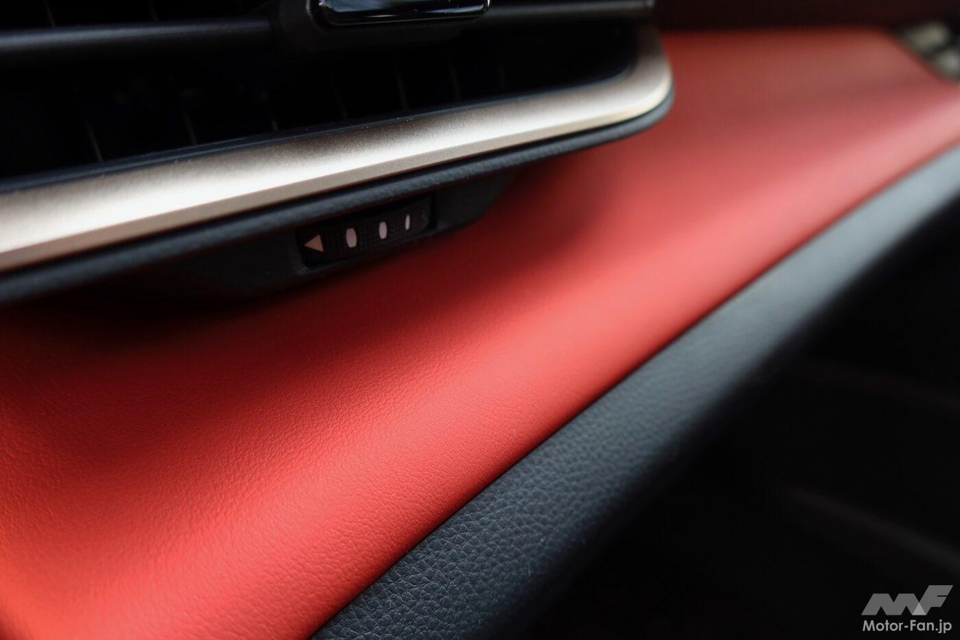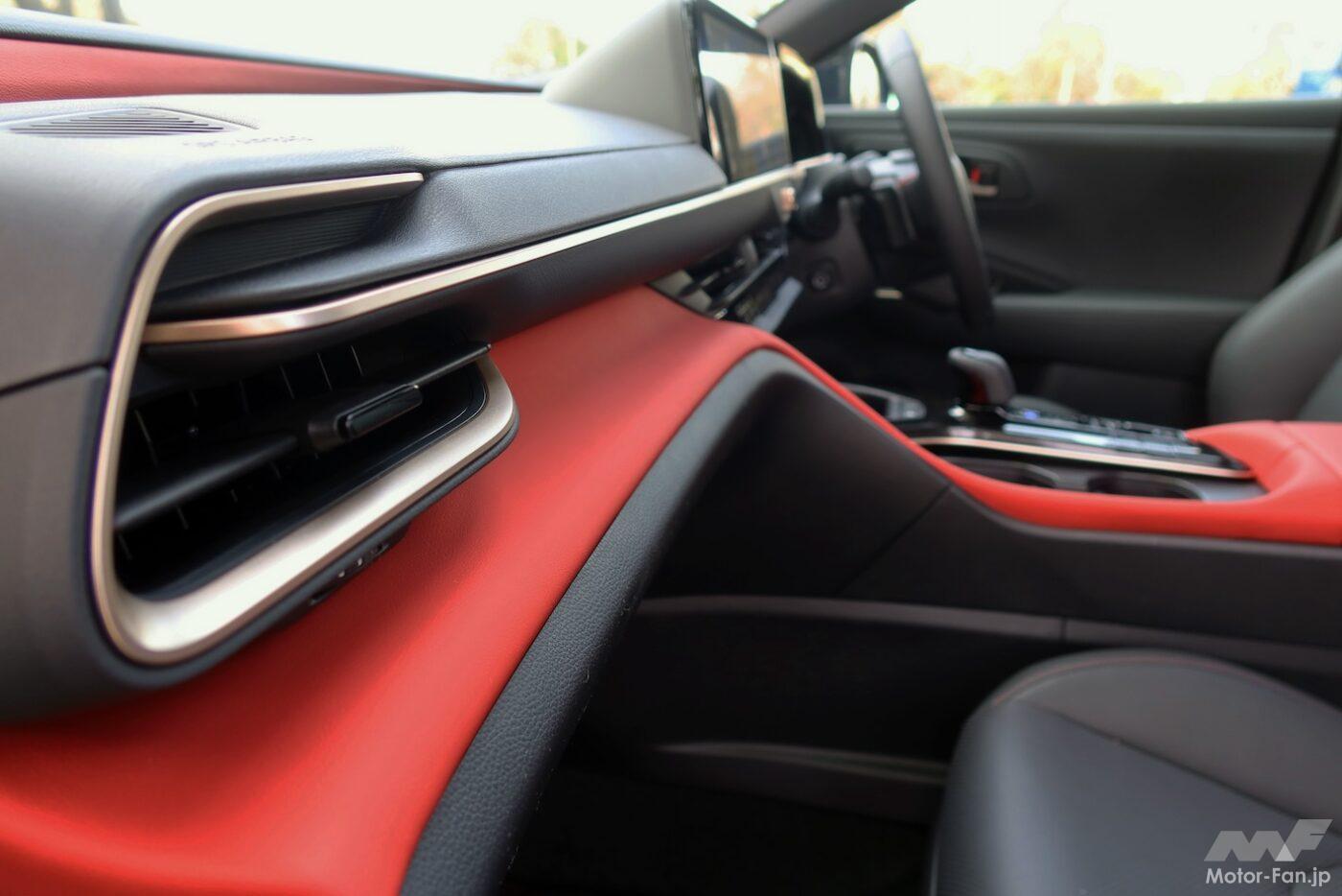 PHEVを選択すると自動的に赤内装となり、ほかのカラーは選べない。割り切った設定だ。センスのいい仕立てであり、筆者は好意的に受け止めた。