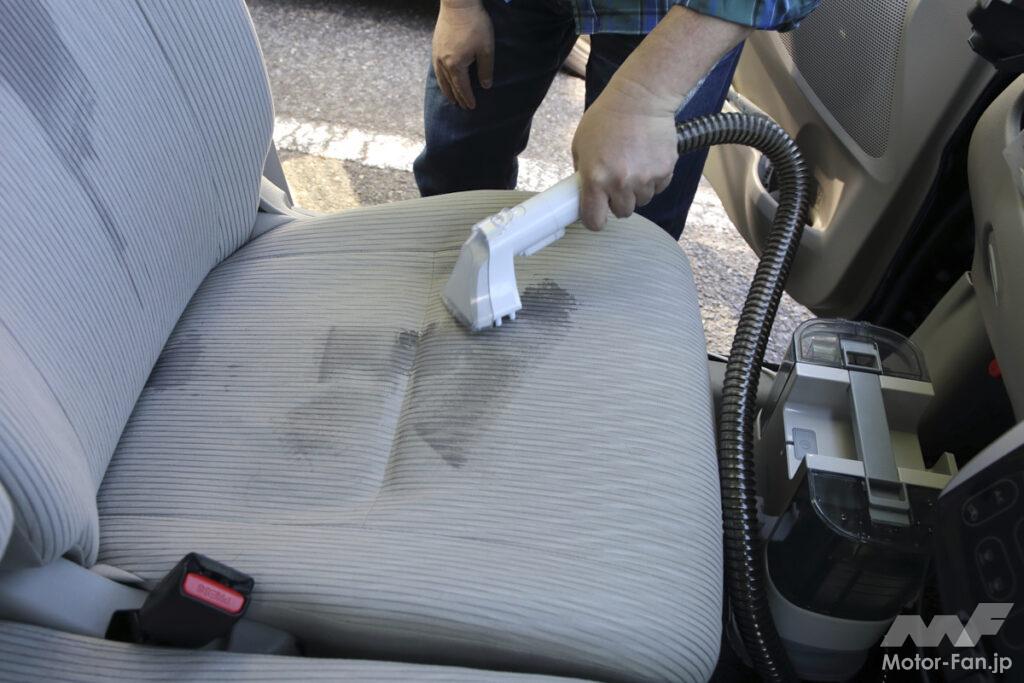 ファブリック素材の内装部分やシートなどは丸洗いできるものでもないのでなかなか清掃しにくいが、このツールはそういった部位の洗浄に最適だ。