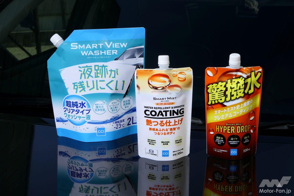 シーシーアイから発売されているカーケミカル『SMART MIST』、『SMART VIEW』シリーズは、パウチ容器に入っている。このパウチ容器は、持ち手となる穴をすぐに切り抜けるパッケージデザインを採用するなど使い勝手も良く、資源面でもエコで個人的なSDGsの取り組みにピッタリ。