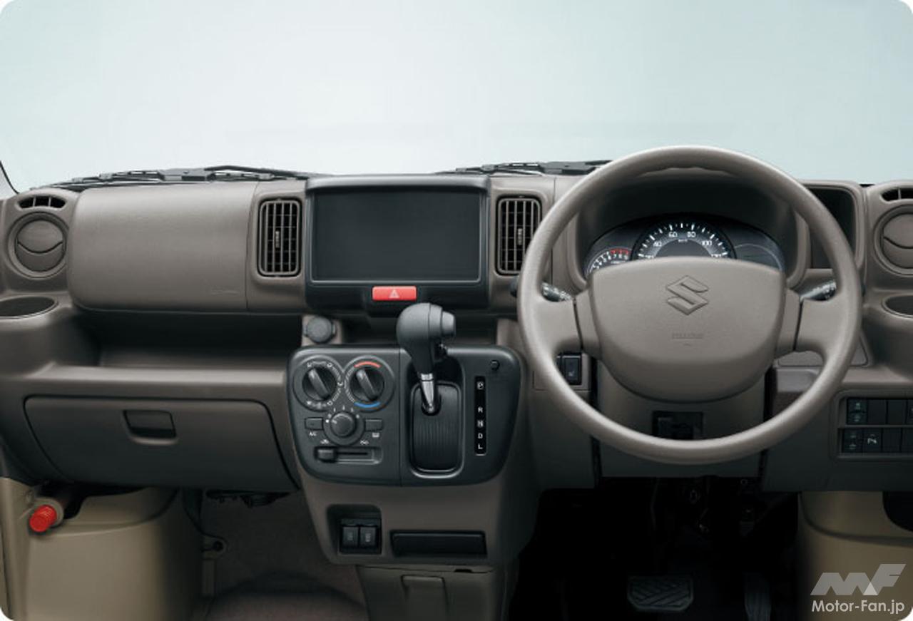 エブリイは、JOINターボを設定したほか、運転席シートヒーター(※1)や助手席シートバックテーブル(※1)、キーレスプッシュスタートシステム(※2)や後席両側スライドドアクローザー(※2)などを採用し、快適性を高めた。さらに、「スズキ セーフティ サポート」を全車標準装備(※3)としたほか、LEDヘッドランプ(※4)を採用し、安全機能が充実した点も新しい。