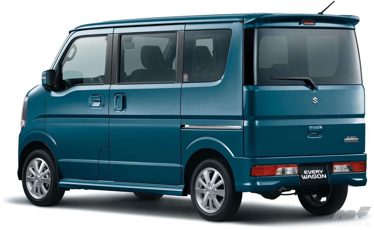 一方、エブリイワゴンは、LEDヘッドランプ、LEDサイドターンランプ付ドアミラー[リモート格納機能付]、助手席シートバックテーブル、本革巻ステアリングホイールが全車に標準装備された。