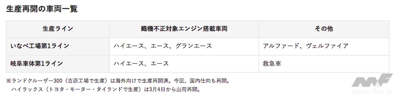 【写真・1枚目】トヨタがハイエースなどの生産を3月4日に再開。豊田自動織機のディーゼルエンジン出荷停止解除を受けて