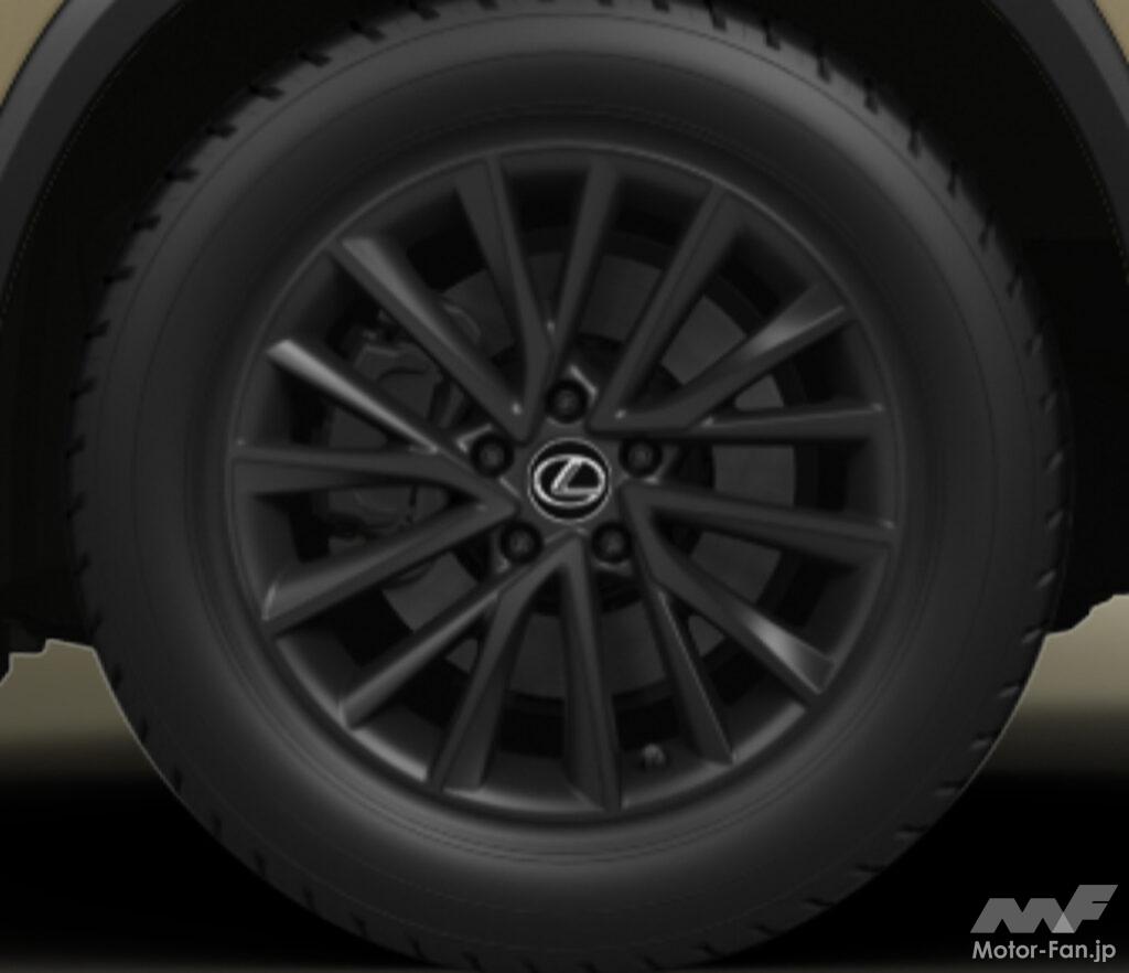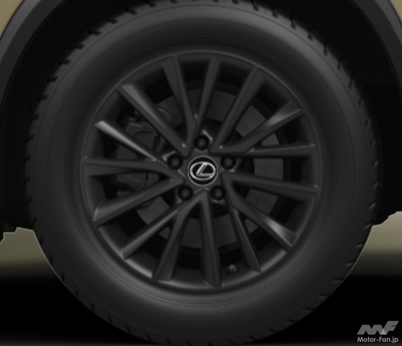 “OVERTRAIL”はNX350、NX350h、NX450h+に設定。最低地上高を200mmにアップしているほか、18インチオールテレインタイヤやブラック系のエクステリアディテールを採用