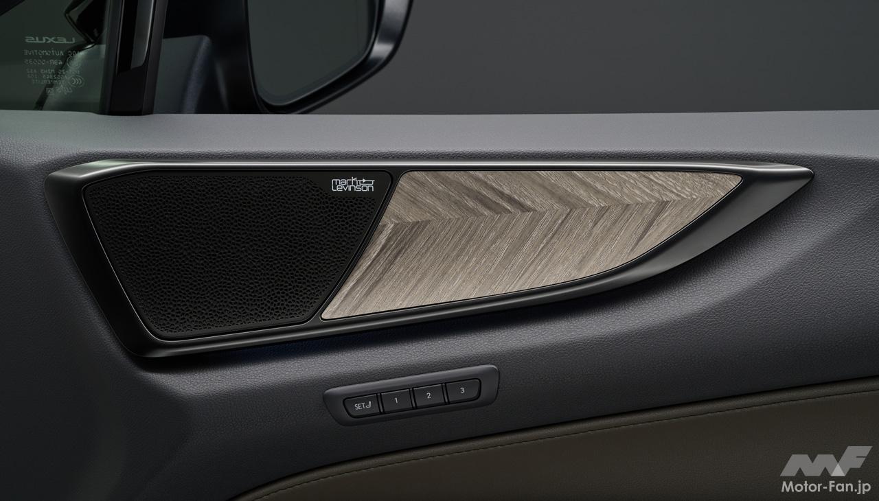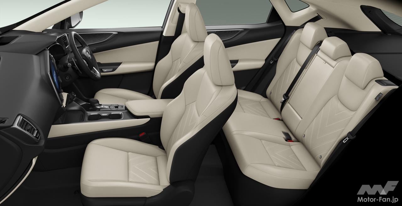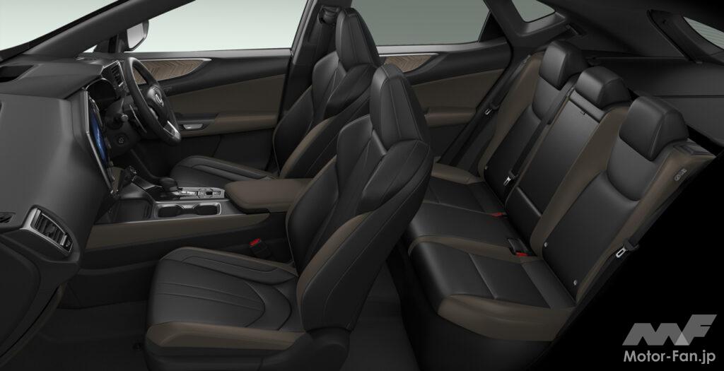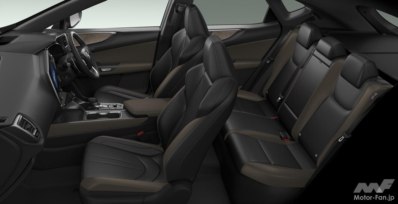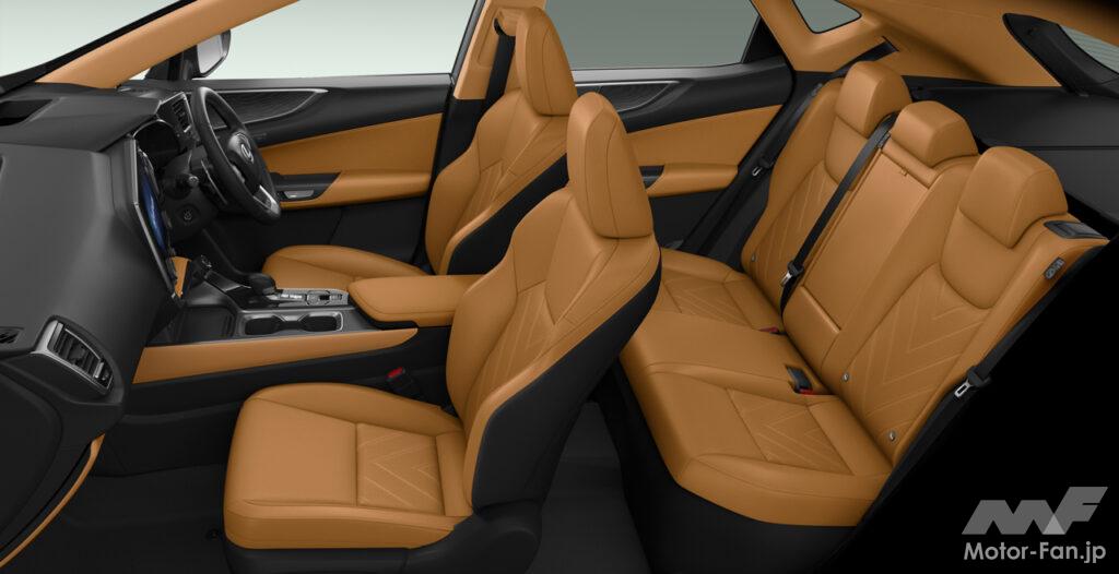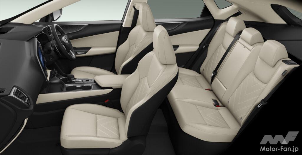 また、ドライバーがクルマとの一体感を感じる気持ちの良い走りを追求し、スムースな発進やアクセル操作に対するリニアな車速コントロールを実現するため、走行制御の改良(NX450h+、NX350h、NX350)や、走り始めの前後トルク配分の見直し(NX350)を実施。ボディ系・エンジン懸架系のNV諸元が見直され、室内の静粛性を高めている。