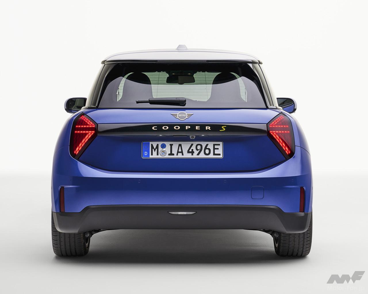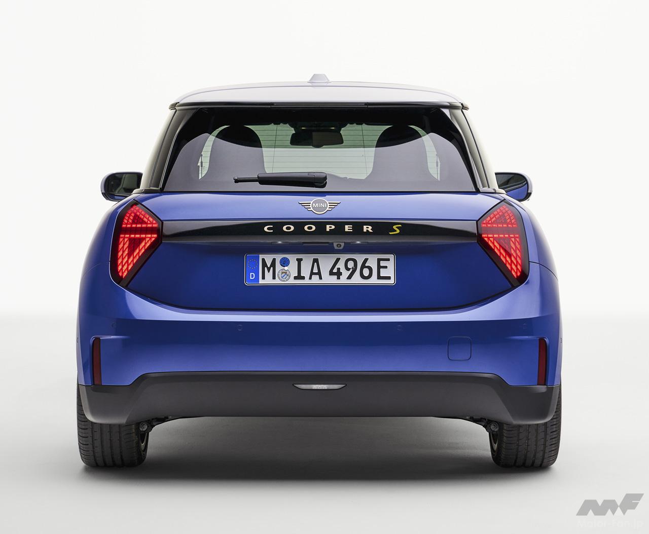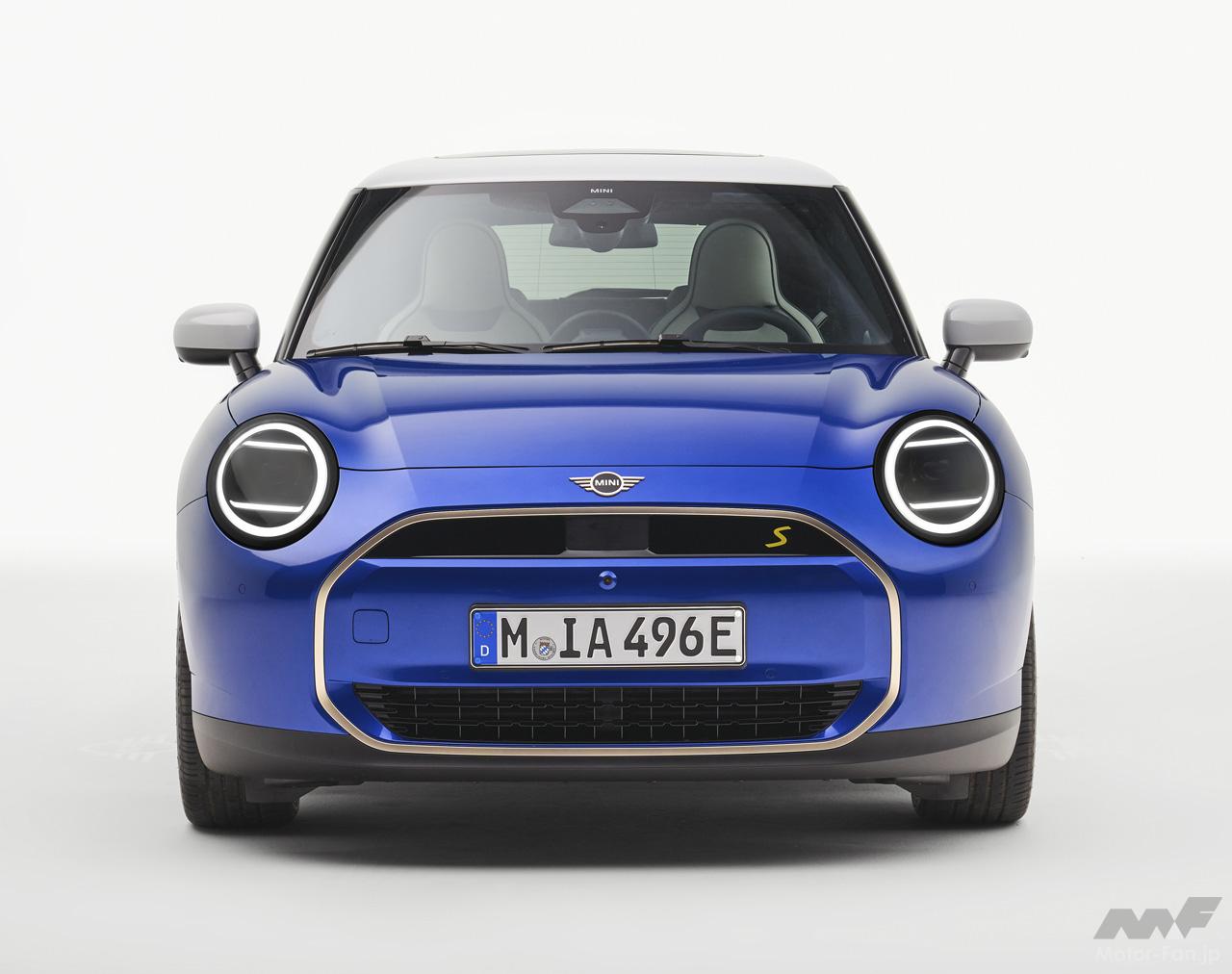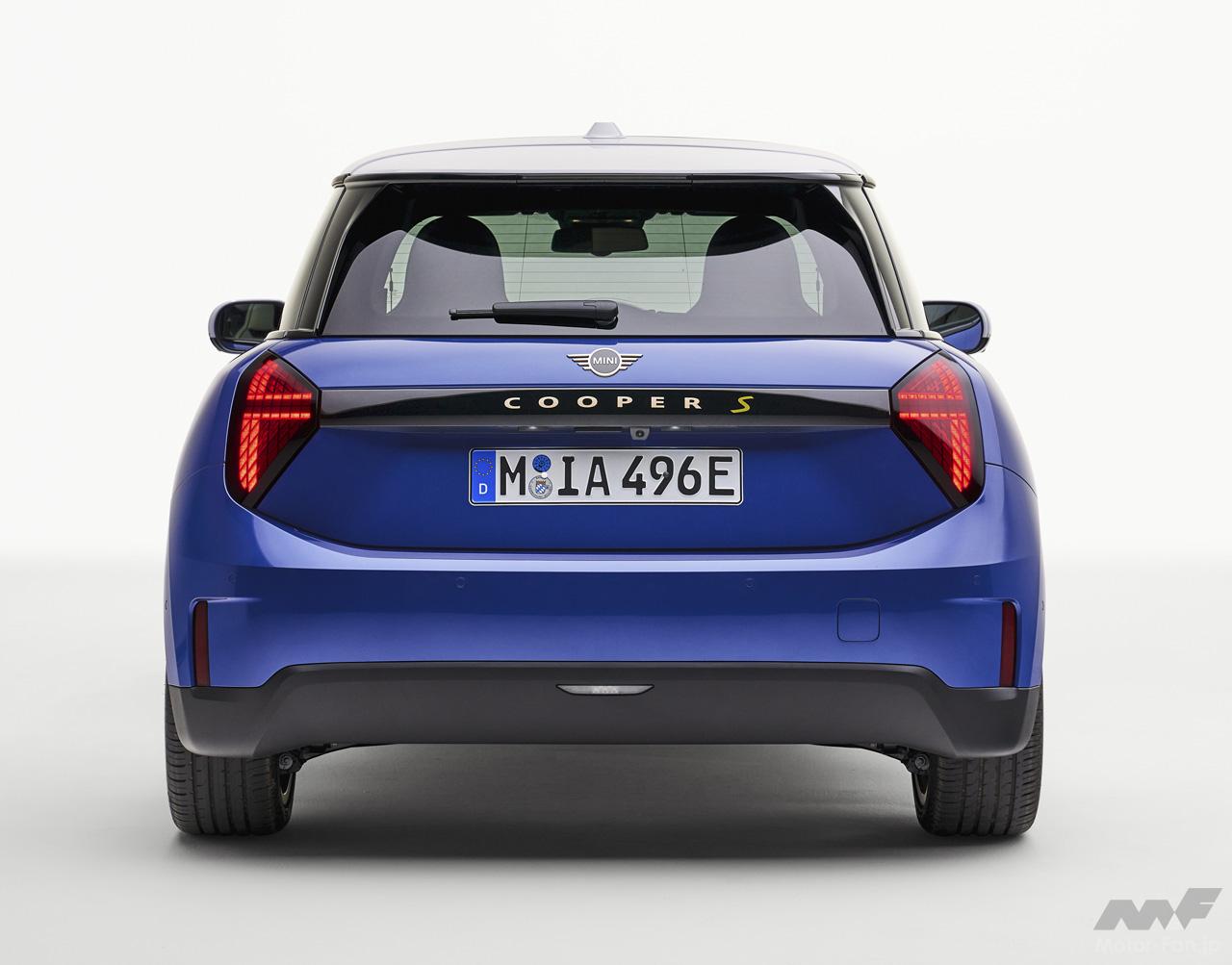 全長3875×全幅1745×全高1455(EVモデルは全長3860×全幅1755×全高1460)mm、ホイールベース2495mmのディメンションを持つ新型は、MINIのDNAを継承しつつ、新世代モデルであることを象徴するミニマルな新しいデザインに刷新。パワートレインの違いや航続距離に影響するエアロダイナミクスを考慮し、デザイン細部を調整。とくにEVモデルの新型MINI クーパーE ドアおよびMINI クーパーSE3ドアにおいては、重要なものだけを残したクリーンなサーフェスが特徴的で、ボンネットスクープ、サイドスカットル、ホイールアーチの加飾、ロッドアンテナ等を廃止し、フラッシュドアハンドルおよびフィンアンテナを採用している。