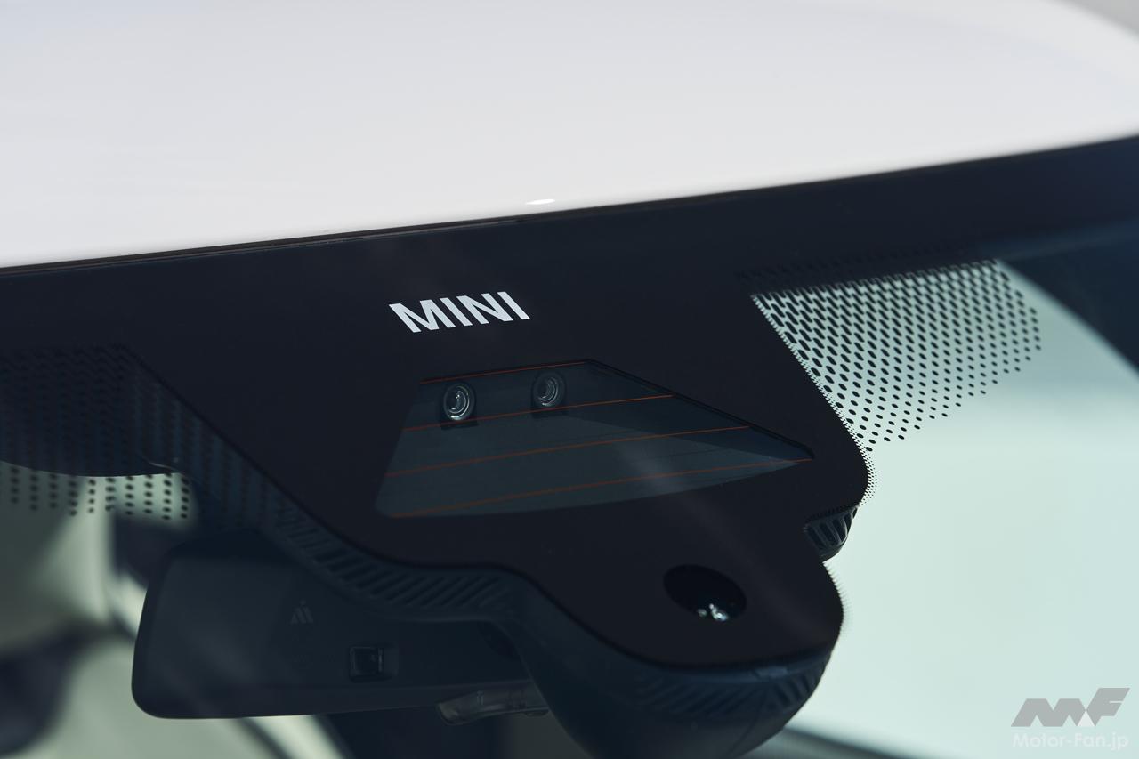 新型は全車標準装備のMINIエクスペリエンスモードにより、インテリアの雰囲気を一変させることが可能だ。ダッシュボード上に最大7パターンの光のグラフィックを投影させることで、光のパターンとアンビエントイルミネーション、そして新たに作られたMINIドライビングサウンドにより、インテリア全体の印象が変化。各モードのそれぞれのデザインにはダイナミックな背景があり、個人の好みに応じて選択することができる。これらの新たな機能は、個性を活かす手段ともなり、例えば、パーソナルモードでは、お気に入りの画像をディスプレイの背景に設定することができ、また、ビビッドモードを設定すると、流れている音楽のカバーアートの色に合わせたライトエフェクトが25色の中から自動で選定され、ダッシュボード上に投影される。