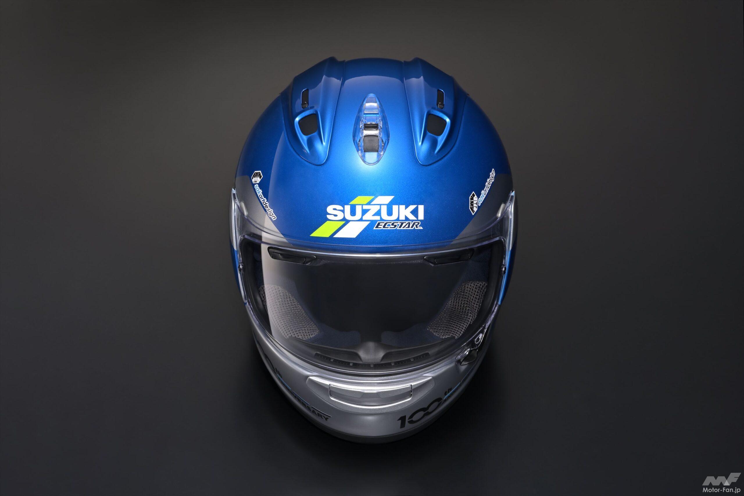 ・ 対象商品 : 「スズキアニバーサリーヘルメット」 (アライ製RX-7X ベース) ・ 販売個数 : 30個 (M・L・XLサイズ 各10 個) ※世界限定70個のうち、日本販売分30個の抽選販売。 ・ 価格 : 143,000円(消費税込み) ・ 抽選申込期間 : 2022年1月11日(火) 〜 2022年1月25日(火) ・ 抽選日 : 2022年1月31日(月)