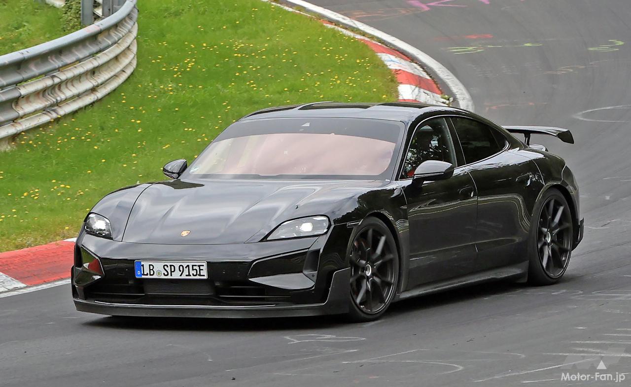 現在のラインアップ中、最速モデルである「タイカン ターボS」は、デュアルモーターを積み、最高出力952psを発揮、0-96km/h加速は2.3秒で駆け抜けるが、新グレードでは、トリプルモーターを積み、最高出力1000psを超えてくると予想される。