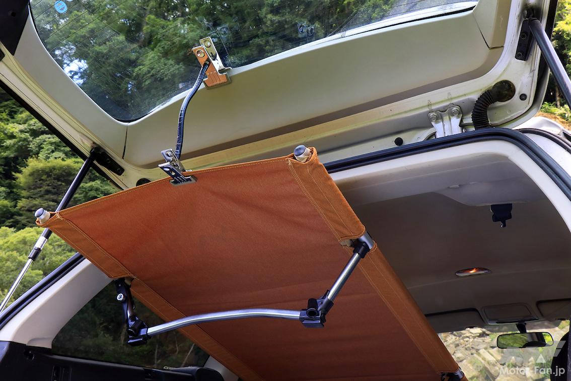 機材車なので、旅行が済んだらすぐに元の状態に戻せることが条件だ。戻す時間は1時間、これを目標にセットする。当然ながら狭い。室内高などは約80cm。これはきついので、マナーを守りながら外の空間を利用する。まぁ、経験から狭い低いも人間、3日もその環境に居ると慣れてしまうものである。なにより、スズキ・ジムニー(JA71)に比べれば、エアコンがあるのだ!