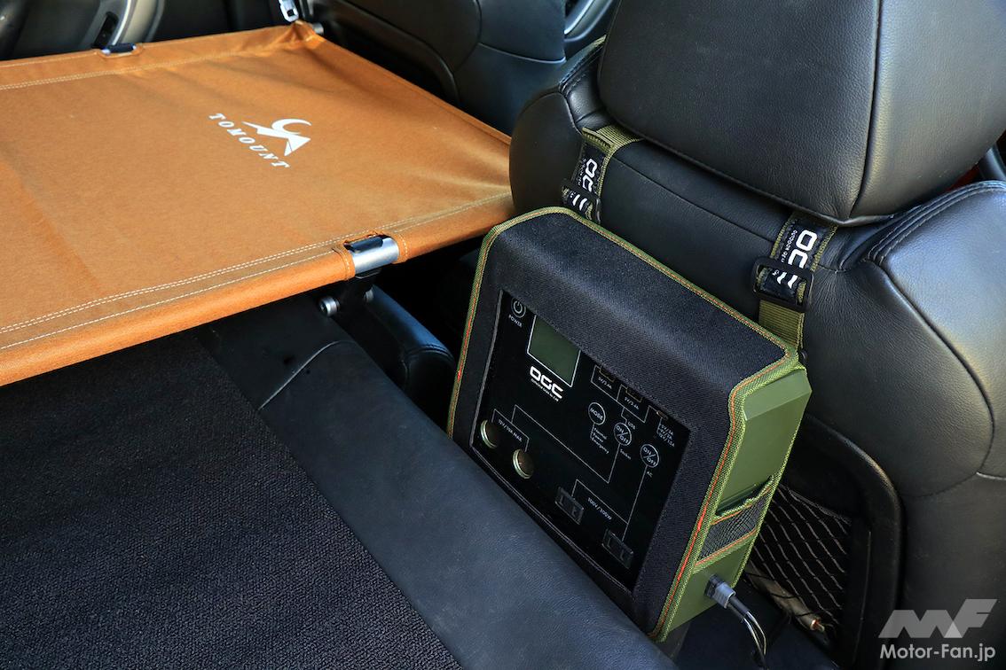 次は「電気」。車中泊で大事なのは娯楽。特にソロなら絶対に必要。SNSでの繋がりも大いに利用。その上で映画やテレビも楽しみたい。外食やコンビニで夕食で済ませたら、その後は何とも夜が長い。だがクルマのバッテリーは使わない。独立した電源を確保する必要がある。朝起きたらバッテリー上がりで立ち往生。それは絶対に避けなくてはいけない。