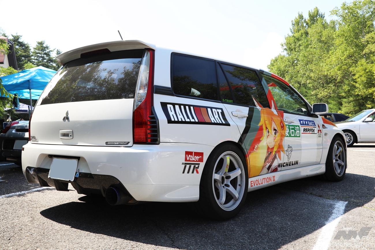 コツコツとチューニングやドレスアップを楽しみながら、月いちペースでサーキット走行などを楽しんでいる。購入から3年後、ボディカラーを1995〜1996年頃の三菱石油ラリーアートカラーをモチーフに、好きなキャラクターを組み合わせた念願の痛車仕様に。ラリーレプリカと可愛いキャラクターが融合した独自のスタイルとなった。