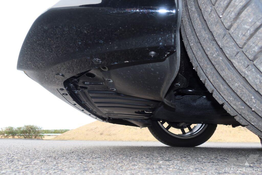 打った策のひとつはe-4ORCEのチューニングである。トルク配分をベース車に対して後ろ寄りにし、リヤタイヤをより駆動側に振り向け、フロントタイヤはより旋回方向に使うようにした。フロントのストラットは外筒の板厚をアップ(2.3mm→2.6mm)し、コイルスプリングのばね定数を3%アップ。スタビライザー(アンチロールバー)のばね定数を15%上げた。フロントのロール剛性を高める(前輪により仕事をさせる)チューニングだ。リヤはダンパー(ショックアブソーバー)の減衰力をチューニングした。