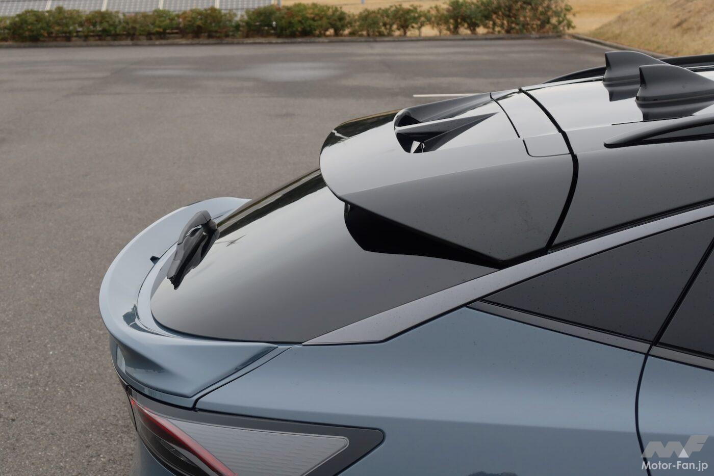 商品コンセプトは、「風格と電撃のクロスオーバー」だ。「ベースモデルであるアリアの風格を磨きつつ、フォーミュラE譲りの電撃パフォーマンスを加えることにより、新感覚のエキサイトメントを提供する」のが開発の狙いだ。