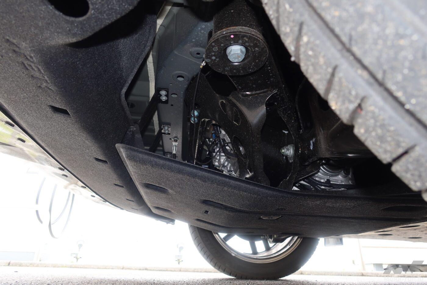 打った策のひとつはe-4ORCEのチューニングである。トルク配分をベース車に対して後ろ寄りにし、リヤタイヤをより駆動側に振り向け、フロントタイヤはより旋回方向に使うようにした。フロントのストラットは外筒の板厚をアップ(2.3mm→2.6mm)し、コイルスプリングのばね定数を3%アップ。スタビライザー(アンチロールバー)のばね定数を15%上げた。フロントのロール剛性を高める(前輪により仕事をさせる)チューニングだ。リヤはダンパー(ショックアブソーバー)の減衰力をチューニングした。