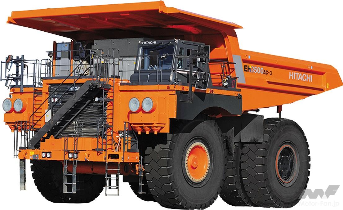 さて、『トミカ』になっている日立建機のリジッドダンプトラックは、世界の大規模鉱山で掘削した資源を効率良く運搬するために開発された車両です。それまでボルボ・ミシガン・ユークリッドのリジッドダンプR60などを輸入販売していた日立建機は、2000年にユークリッド社と協力し、ユークリッド日立としてEHシリーズ(Eはユークリッド、Hは日立をあらわす)のリジッドダンプトラックを開発しました。ちなみに、このシリーズの中でもEH5000AC-3 は国産車最大級の積載量を誇っています。