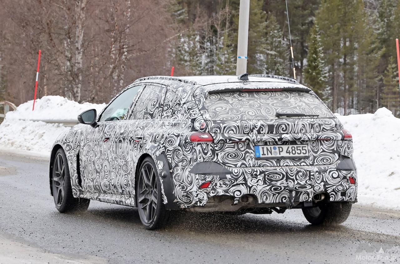 フィンランド山中で捉えたプロトタイプはカモフラージュの多くが落とされ、最終デザインが見えてきた。特に注目は、巨大オーバーフェンダーのサイズだろう。フロントアーチのすぐ後ろには、スリムなエアベント用のスペースを作ることが出来、リヤアーチもプレースホルダーながらサイズは量産型とみていいだろう。