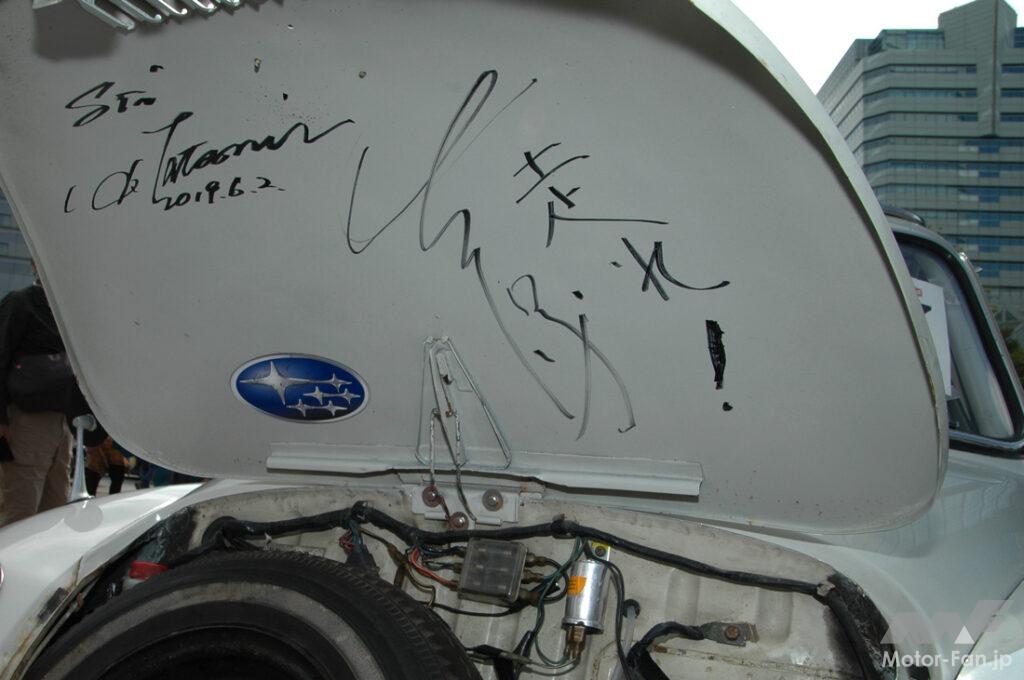 そしてなんとボンネットフードの裏側には大久保力選手の直筆サインが記されているのだ。イベントで大久保力選手にこのクルマを直接見てもらう機会があり、サインしてもらったそうだ。