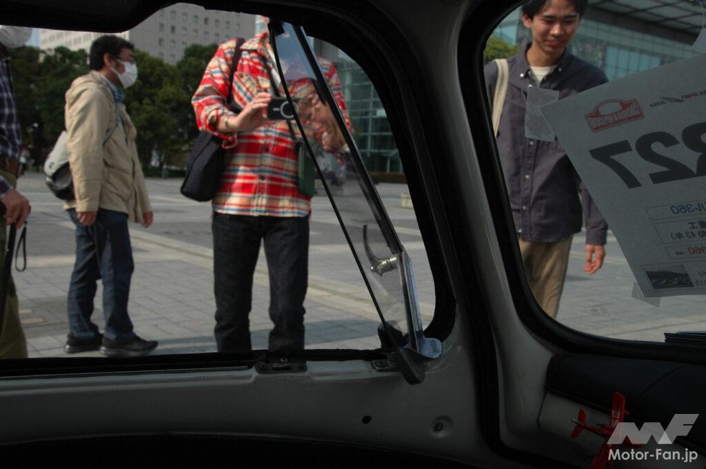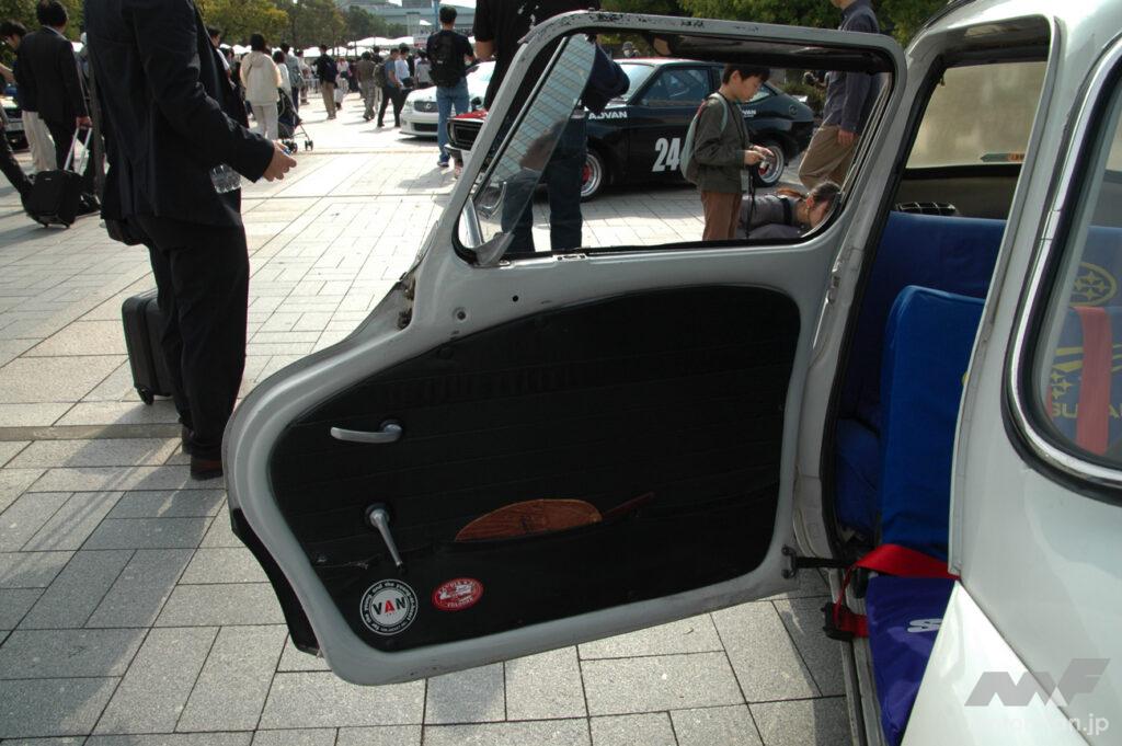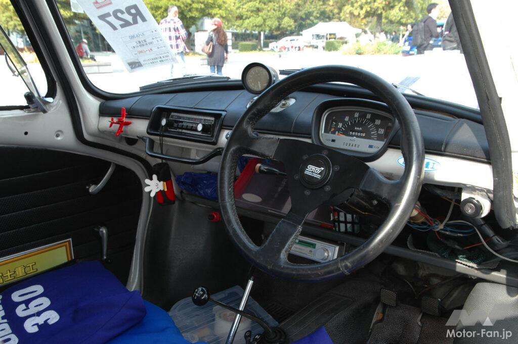 オーナーのきょ〜と360さんは以前はスターレット(KP61、EP71改)やカローラレビン(AE86/2ドア)でダートトライアルに参加しており、1991年には静岡県シリーズのC1クラスチャピオンを獲得した実力派。それとは別に古いクルマも好きで、スバル360は学生時代にトミカをもらったり、「てんとう虫の会(スバル360のオーナーズクラブ)」で試乗させてもらったりしているうちに、静岡スバル沼津店に入庫したこのクルマを購入したそうだ。
