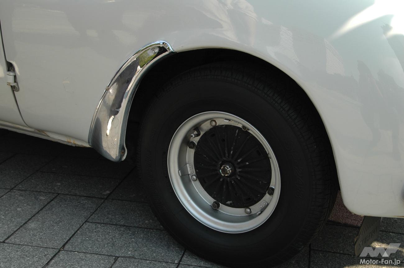 というのも、スバル360のデザイン的な特徴ともなっているボンネット前端のスリットは、初期型が9本(1958年〜1966年)、中期型が11本(1966年〜1968年)だったが、最終型では消滅(1968年〜1970年)している。やはりスリット付きのフードと、丸型のテールランプが好きなのだそうだ。