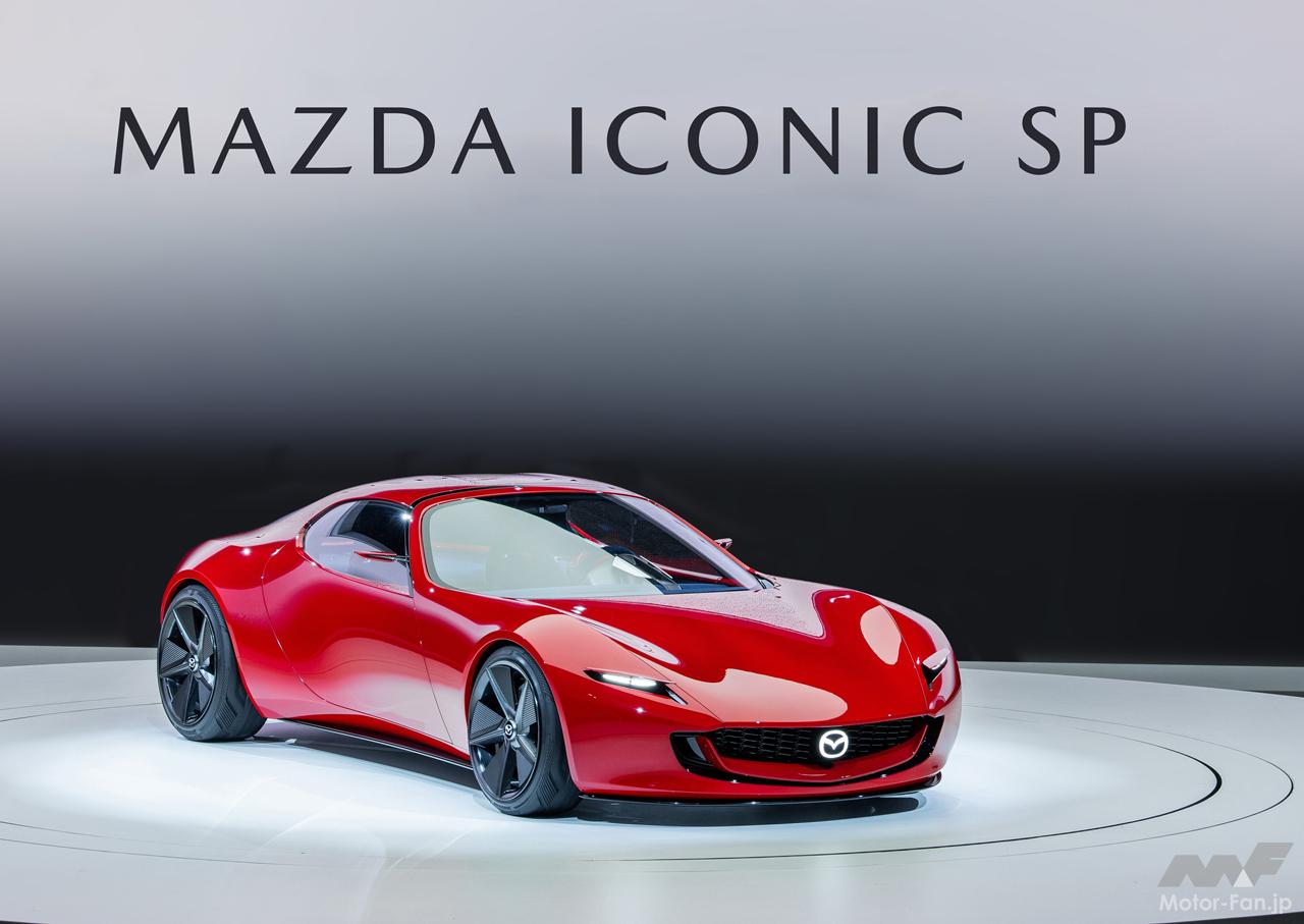 また、昨年のジャパンモビリティショー2023に出展し、好評を得た2ローター・ロータリーEVのコンパクトスポーツカーコンセプト『MAZDA ICONIC SP』も披露される。
