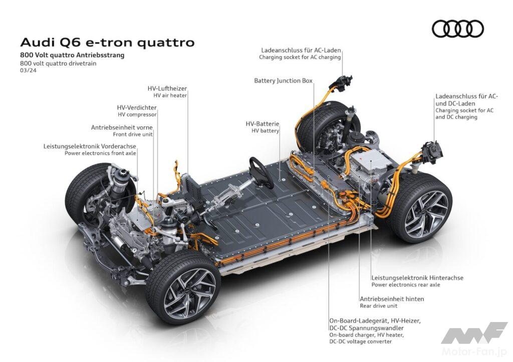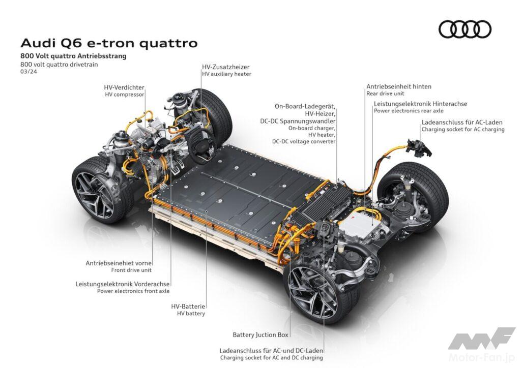Q6 e-tronの電動システムは、800Vシステムを使う。これにより充電性能が格段にアップ。SOC10%→80%充電はわずか21分でこなす。