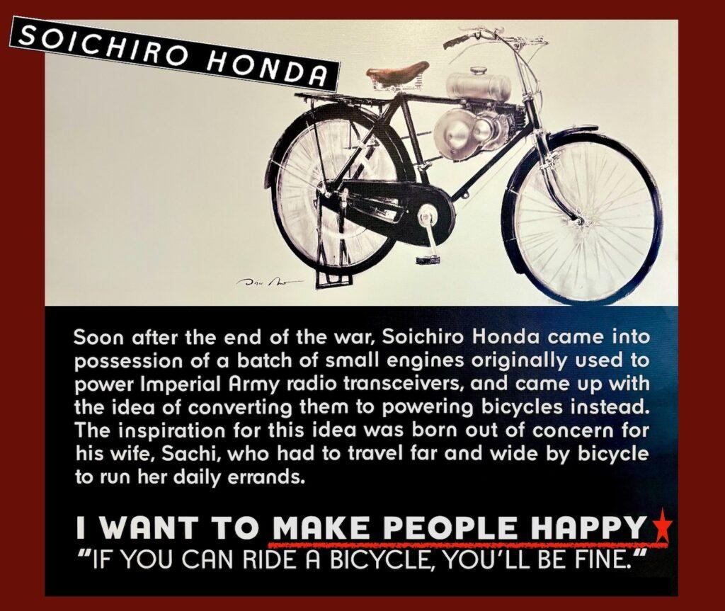 ベンリィ「便利」という看板商品の2輪の名前からも誰にでも便利な商品を届けたいという宗一郎の意志が伝わってきます。F1やレースのイメージが強いホンダですが実は世界中の人々に移動の幸せと喜びを届ける、その為のレースであり技術なのです。