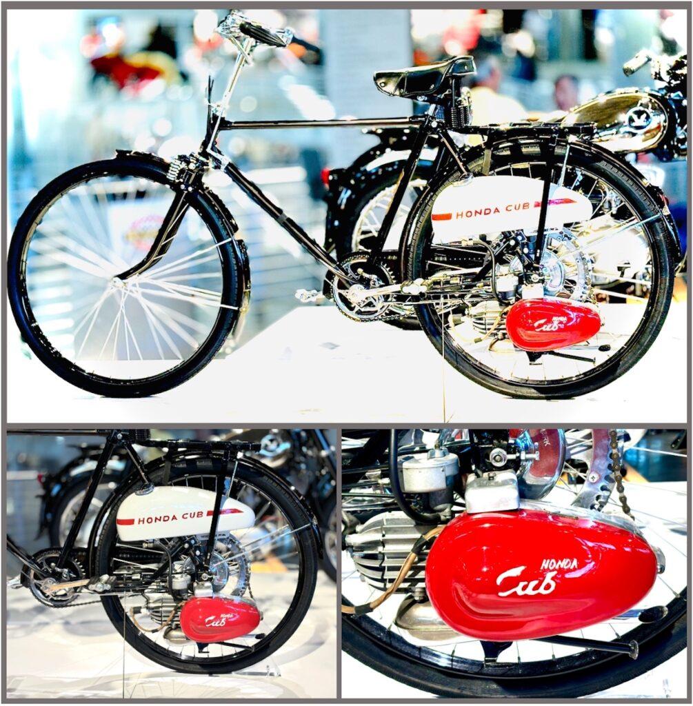 移動は人間の活動と生活の基本です。奇しくも敗戦国から庶民の移動と運搬の名車のカブとベスパが生まれたのは偶然でなく必要が生んだ必然なのです。庶民と妻の自転車移動を少しでも楽にさせたい。本田宗一郎の移動の夢への一歩。戦後の日本には自動車は少なく自転車が移動の主役。山道の多い日本の未舗装の道の移動へ軍放出の小型発電機を加工しました。