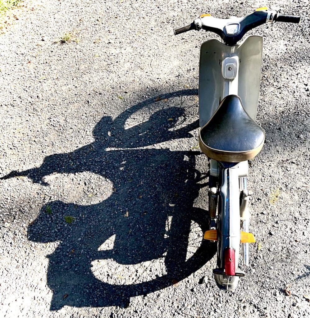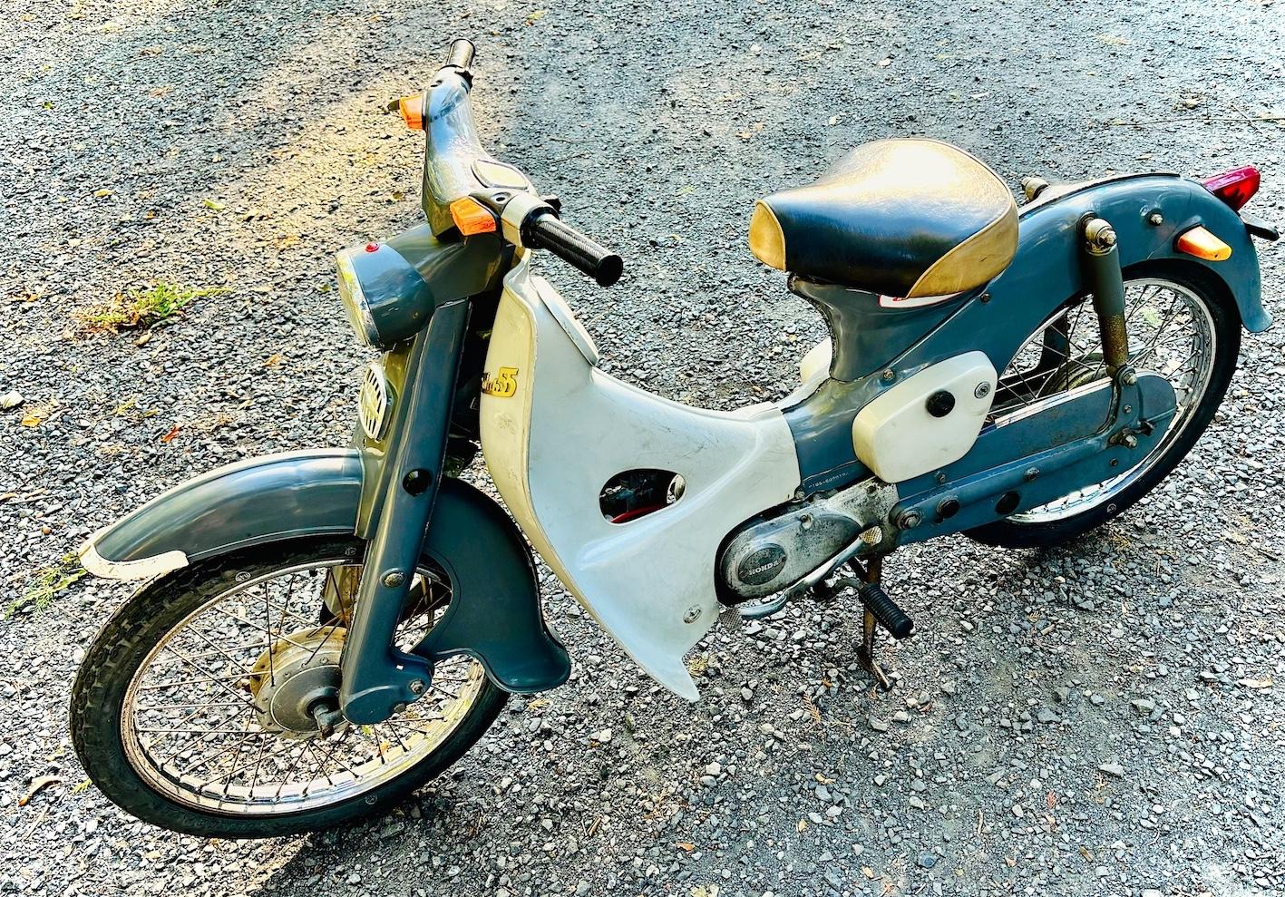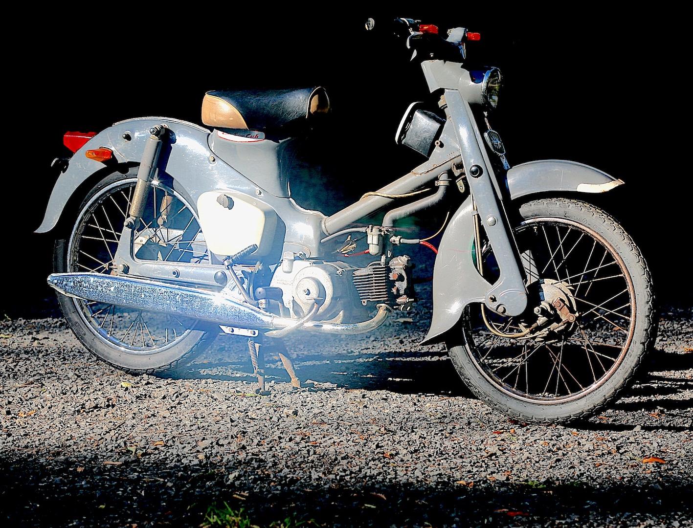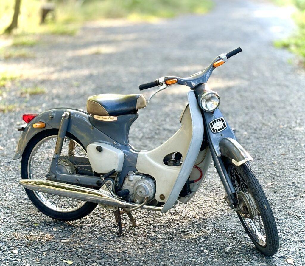 20世紀は乗り物の時代、多くの青年は乗り物に自らの夢を託しました。より速くより遠くへの身体能力拡張装置。この小さな前傾4サイクル単気筒エンジンは彼らのハートのエンジンを微速前進させたのです。私も高校の校庭で初めて乗った瞬間に自由の翼を得た感動に痺れた一人です。走り始めた瞬間に動くバランスを取る動物たる人間の血が騒いだのです。この写真は2台目の私の所有車です。